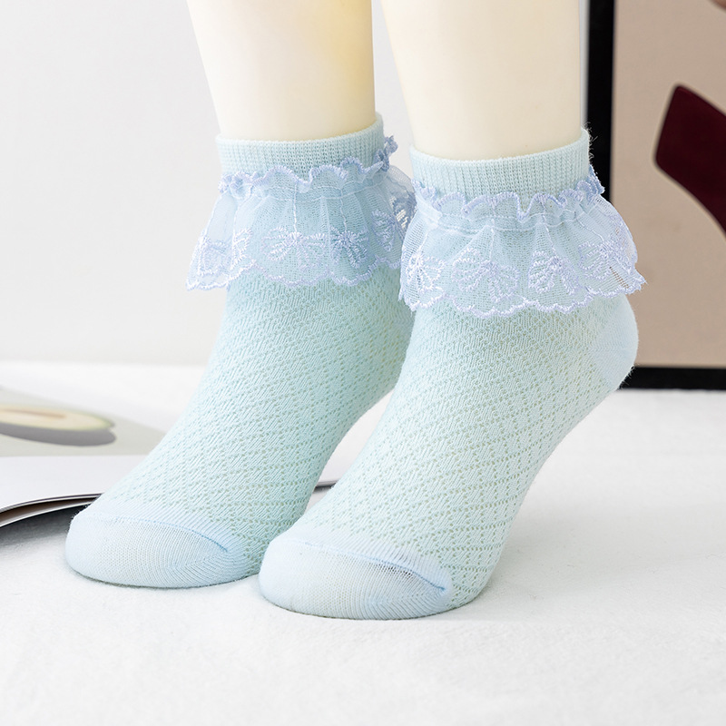 여자 면 양말 어린이 레이스 댄스 양말 어린 소녀 일본식 레이스 공주 양말 메쉬 땀 흡수 통기성 면 양말