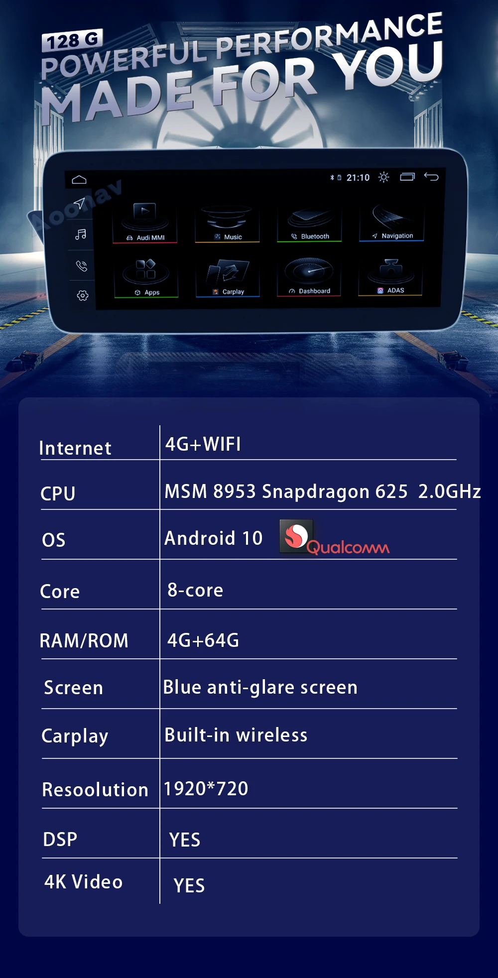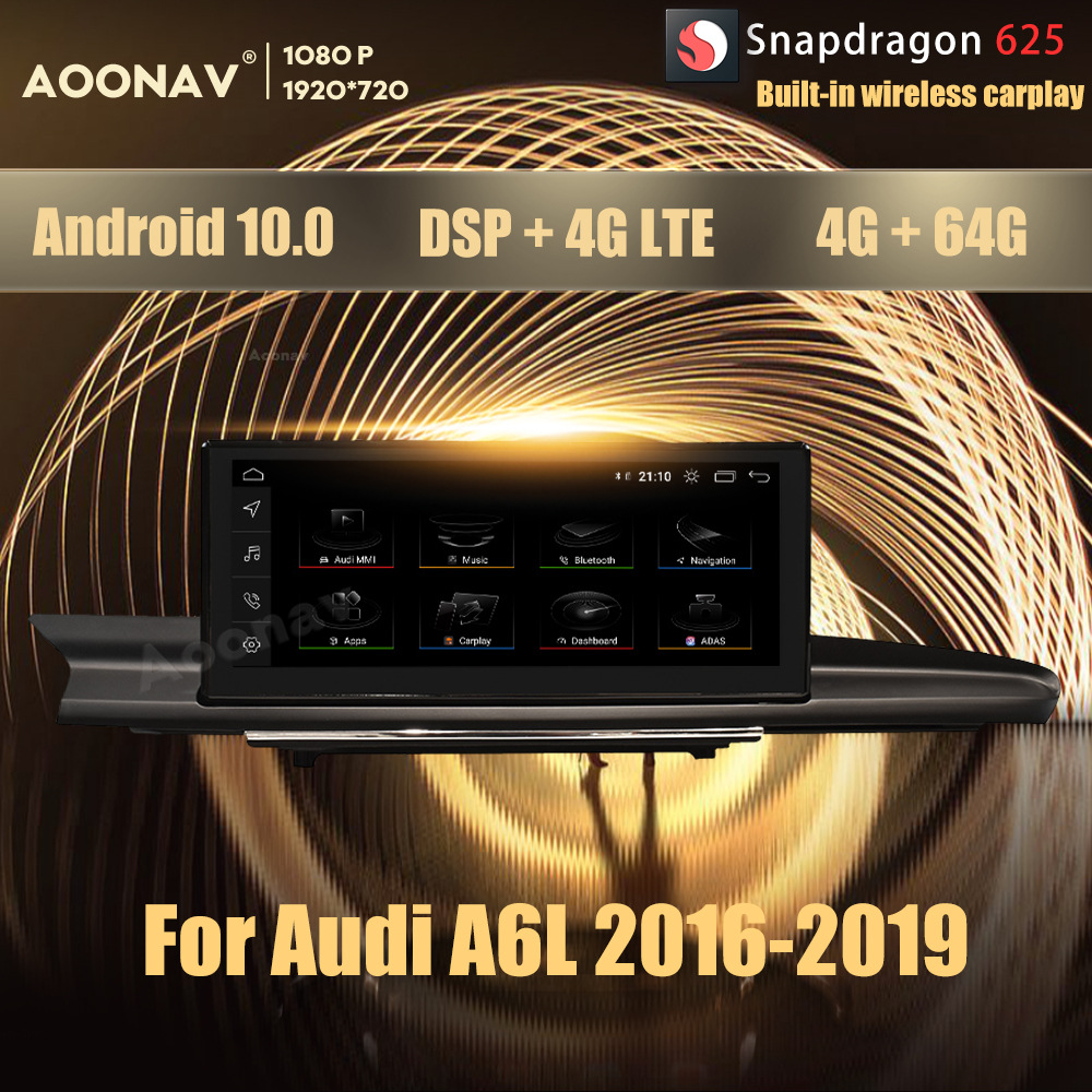10.25 英寸 8 核 4+64G Android 10.0 Snapdragon 625 车载收音机 GPS 用于奥迪 A6L 2016-2019 多媒体 DVD 播放器主机