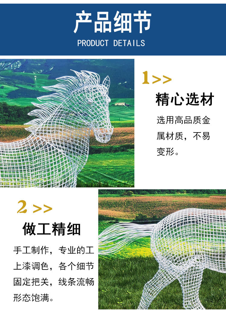 스테인레스 스틸 중공 말 조각 대형 동물 조각 야외 장식품 스테인레스 스틸 풍경 조각 제조 업체스토어 가기