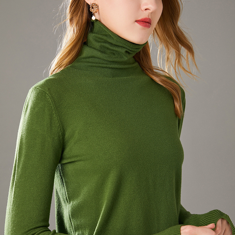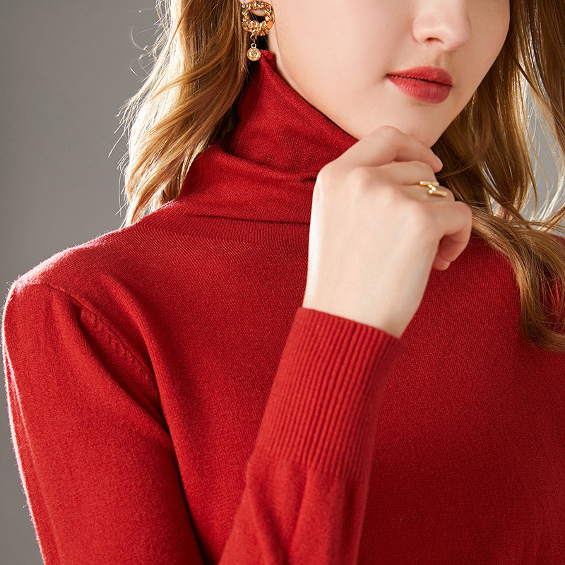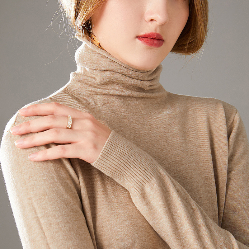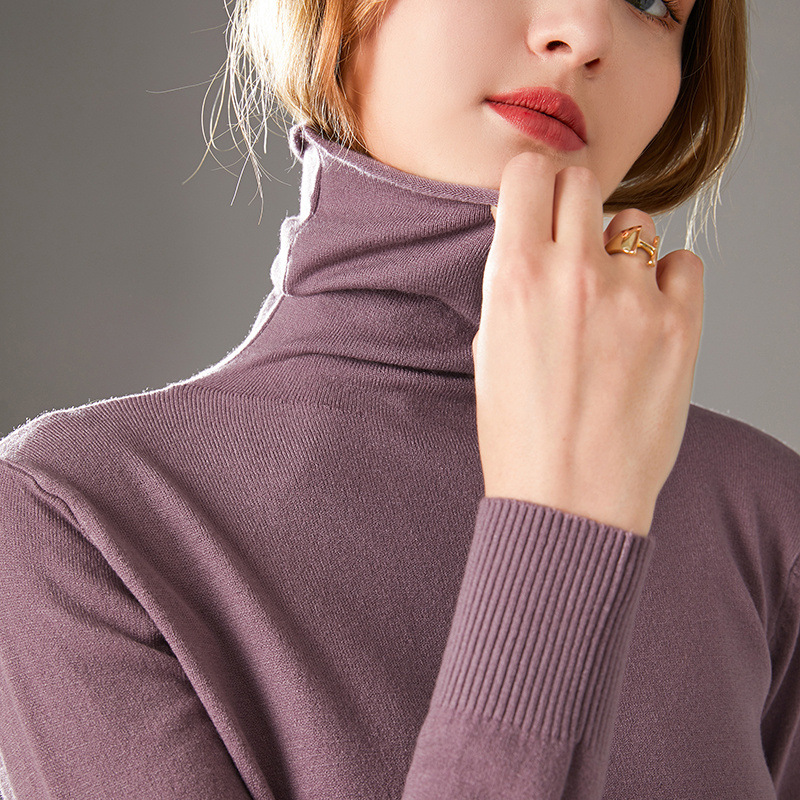 가을 터틀넥 스웨터 슬림핏 얇은 니트 스웨터 여성용 코어 회전 원사 스택 칼라 베이스 셔츠 라이브 폭발