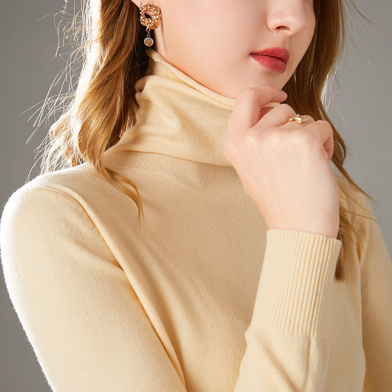 가을 터틀넥 스웨터 슬림핏 얇은 니트 스웨터 여성용 코어 회전 원사 스택 칼라 베이스 셔츠 라이브 폭발스토어 가기