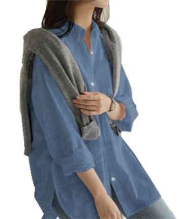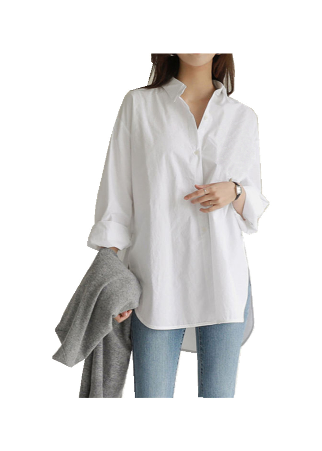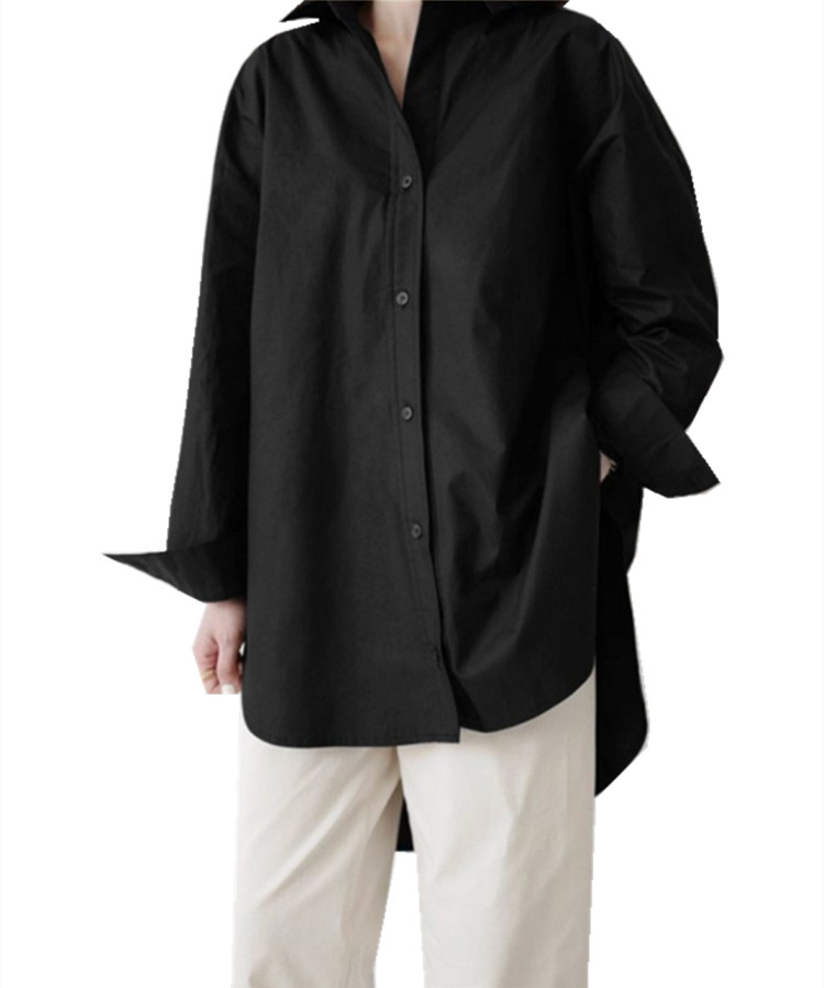 크로스 보더 아마존 AliExpress 2021 가을 새로운 유럽과 미국 여성의 단색 긴 소매 옷깃 불규칙한 셔츠스토어 가기