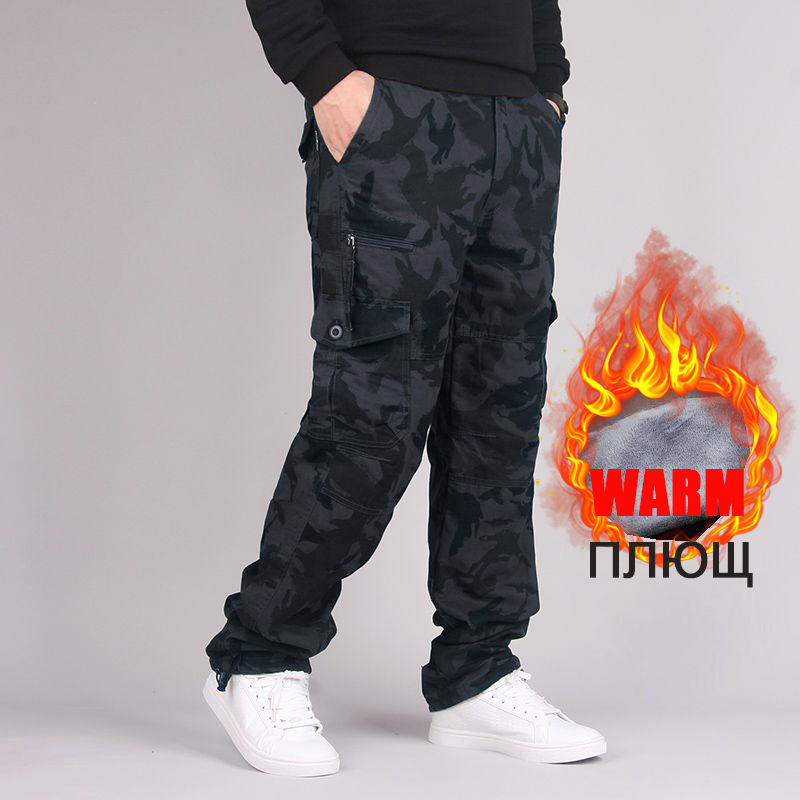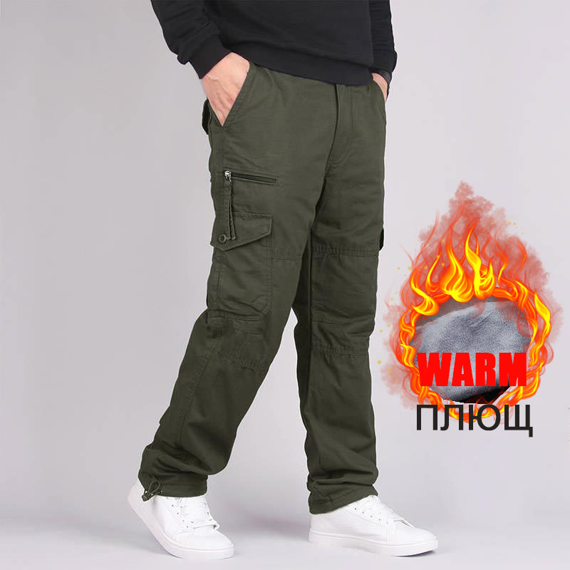 겨울 기모 두꺼운 캐주얼 바지 바지 남자의 멀티 포켓 바지 지방 타이드 브랜드 플러스 사이즈 바지 머리카락의 세대