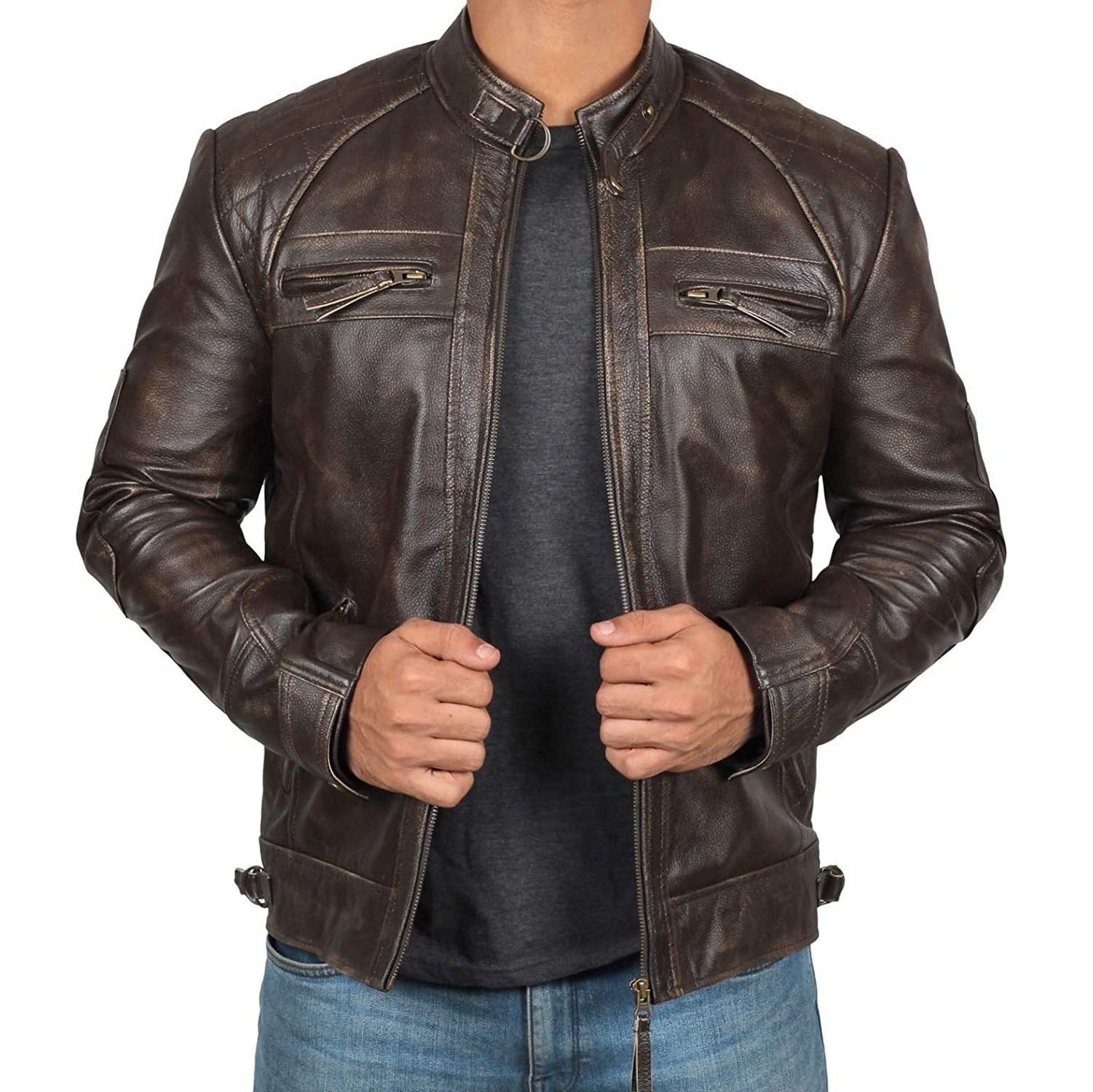 2025 대외 무역 유럽과 미국 남성 가죽 자켓 남성 청소년 스탠드 칼라 펑크 남성 오토바이 가죽 자켓 E8U533스토어 가기