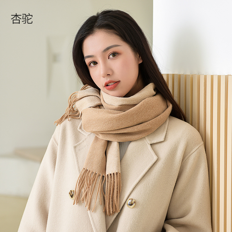 100% 울 스카프 여성용 겨울 클래식 모든 경기 한국식 목 보호 단색 울 2 색 스카프 여성용 방한 스카프스토어 가기