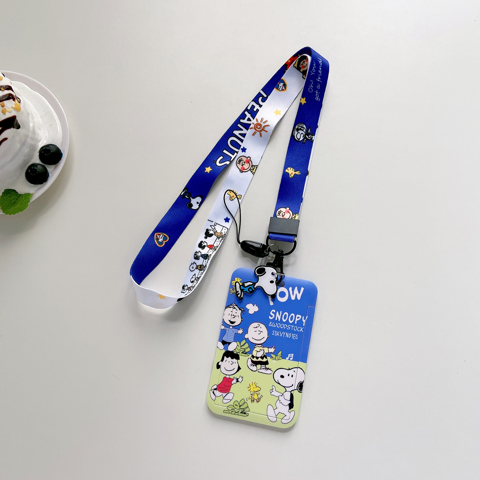 스누피 땅콩 만화 가슴 카드 긴 로프 카드 세트 학생 식사 카드 보호 커버 액세스 카드 버스 카드 교수형 가방 버클스토어 가기