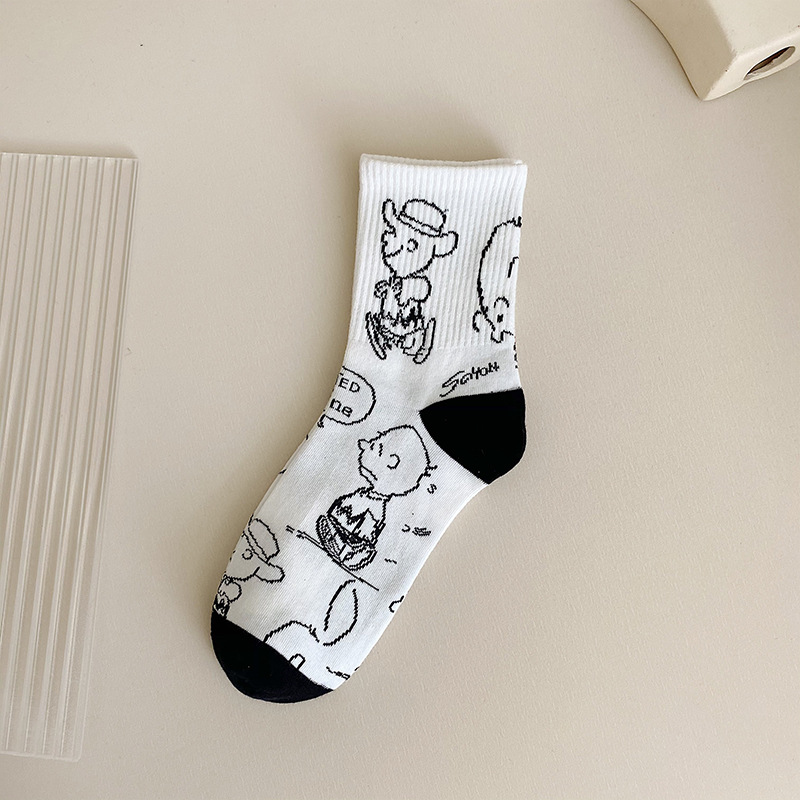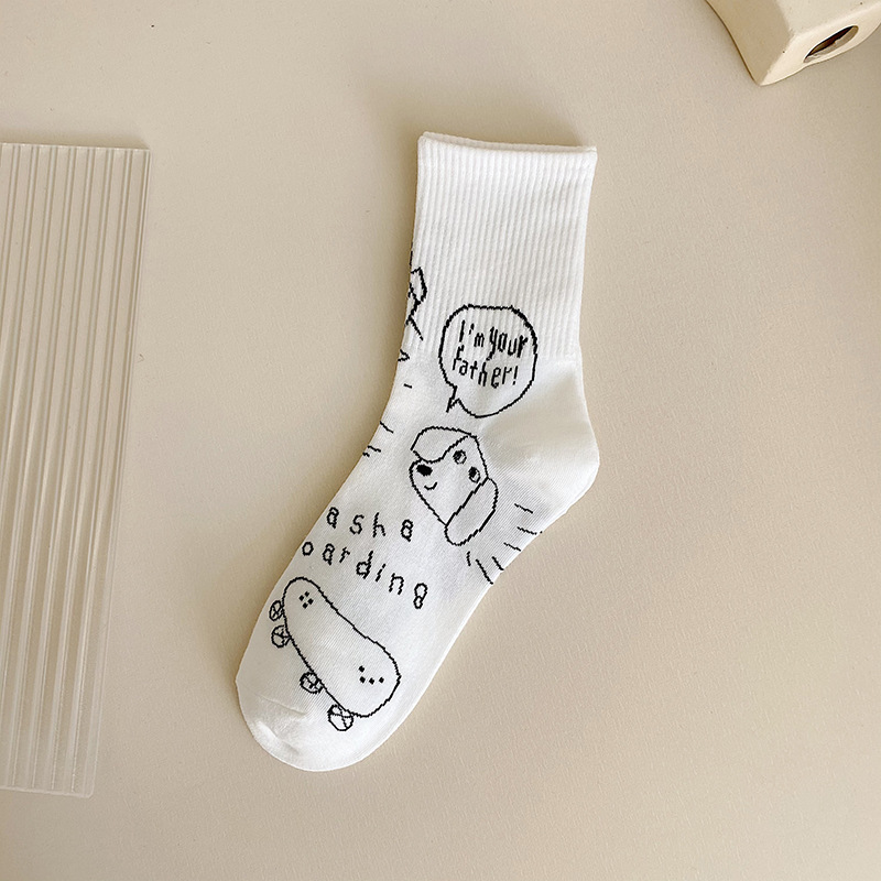 스타킹 어린이 중간 길이 스타킹 여름 면 스타킹 블랙 화이트 가을 스포츠 스타킹 남성용 땀 흡수 긴 튜브 유행 스타킹 봄과 가을스토어 가기