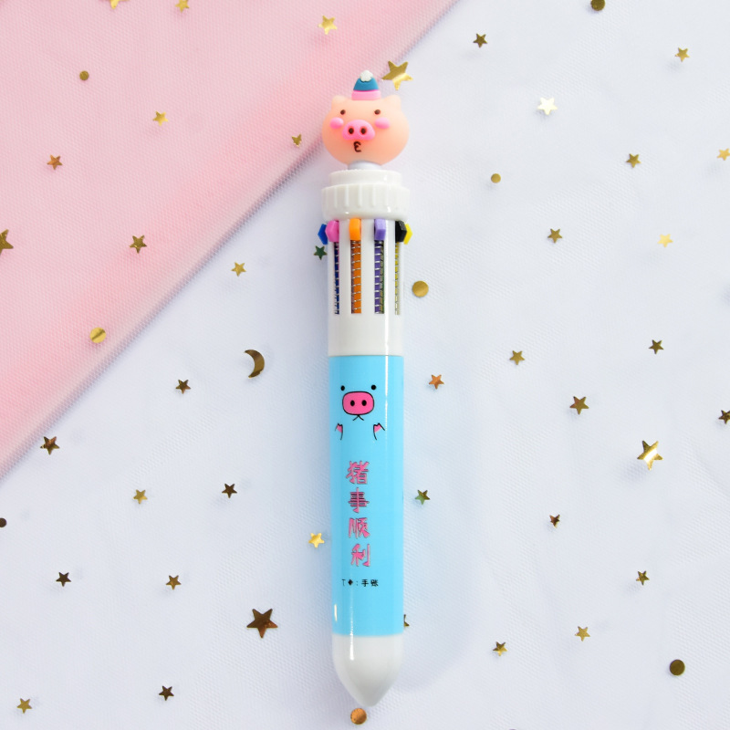 만화 여러 가지 빛깔의 볼펜 프레스 유형 10 색 다기능 볼펜 학생 학교 문구 선물스토어 가기