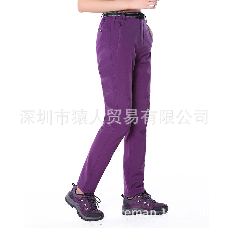 겨울 야외 소프트 쉘 바지 여자의 발수성 통기성 하이킹 등산 바지 남자의 기모 두꺼운 따뜻한 스포츠 러쉬 바지