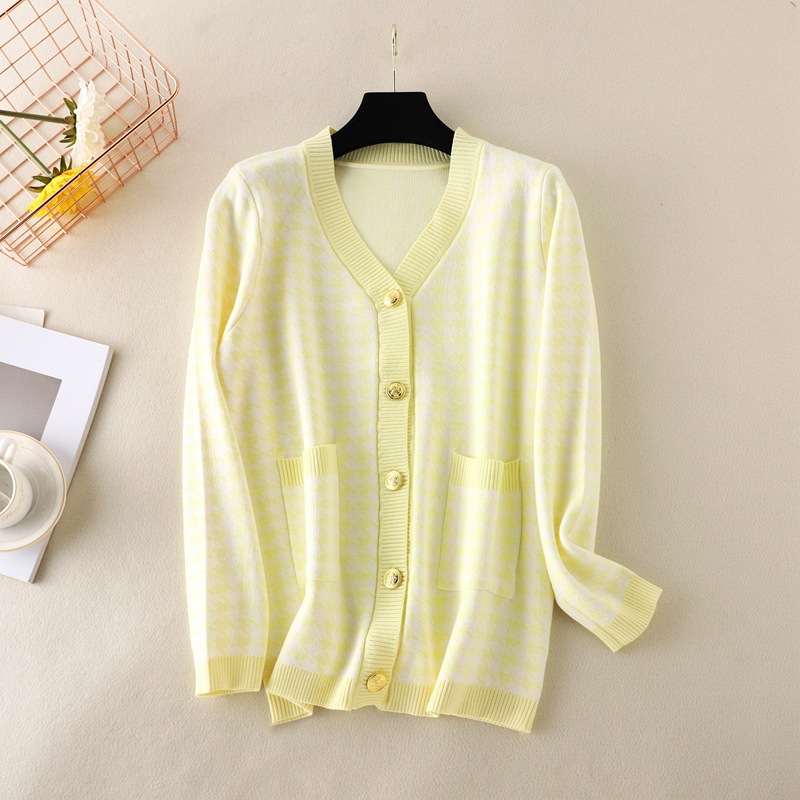 Xiaoxiang F houndstooth 니트 카디건 여자의 2023 가을 새로운 V-넥 긴 소매 느슨한 플러스 사이즈 긴 재킷 코트스토어 가기