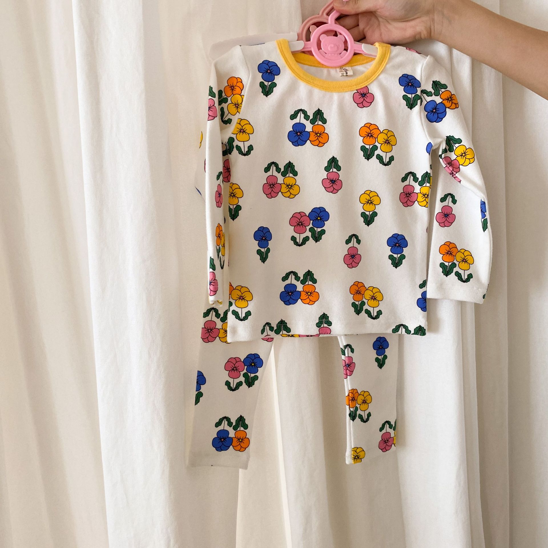 2024 가을과 겨울 새로운 어린이 샌딩 속옷 세트 홈 옷 소년 소녀 아기 잠옷 투피스 홈 옷