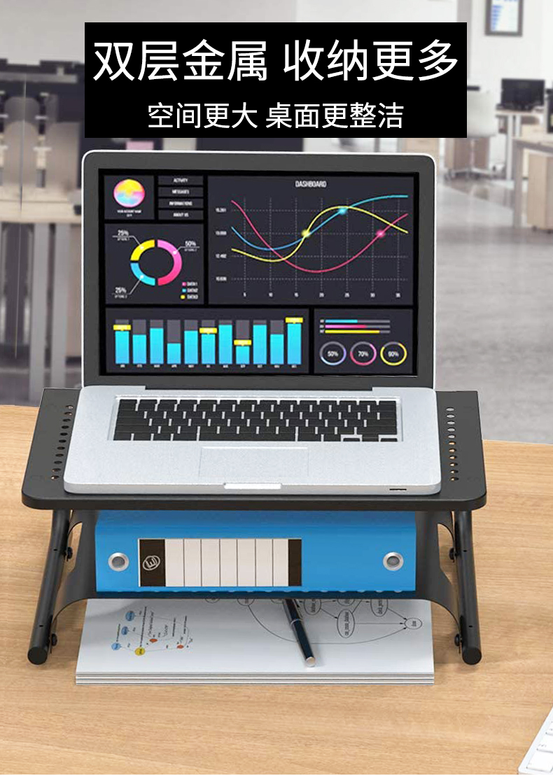 더블 레이어 노트북 스탠드 모니터 컴퓨터 저장 사무실 데스크톱 기본 선반 높이 증가