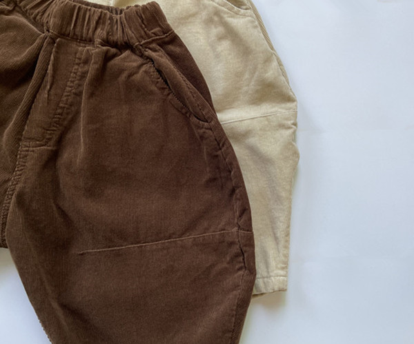 가을 어린이 바지 한국식 와이드 코듀로이 바지 어린이 느슨한 크롭 바지 소년과 소녀를위한 느슨한 단색스토어 가기