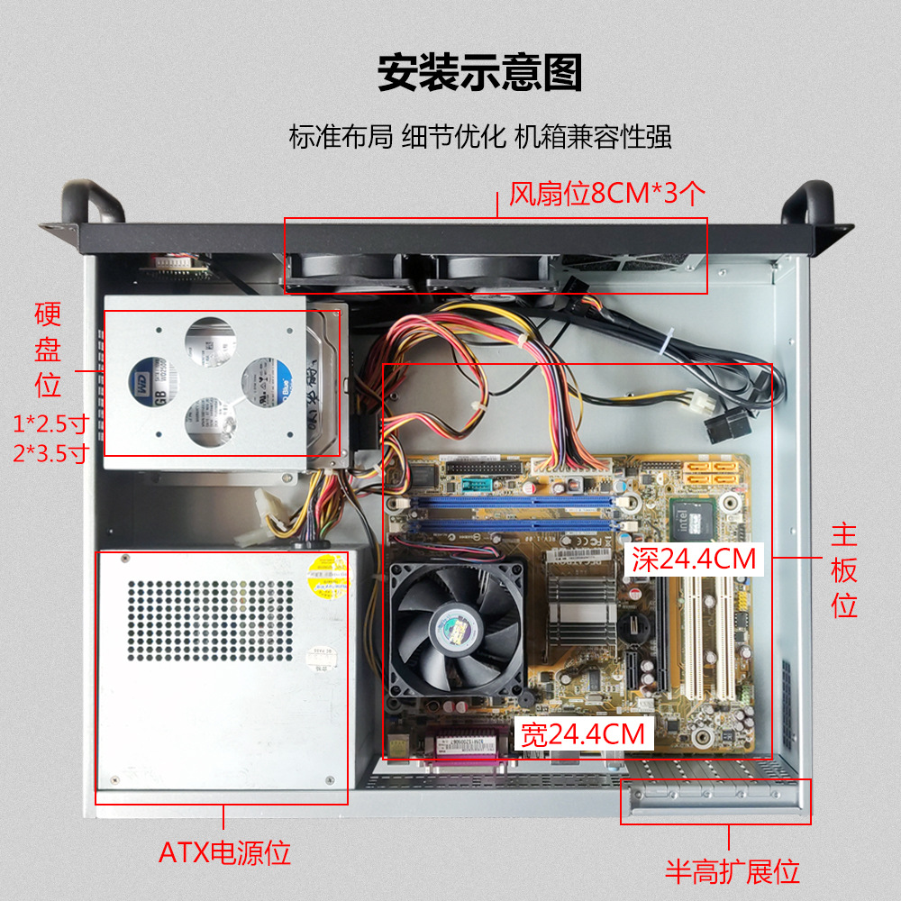 공장 재고 2U 섀시 350mm 산업 제어 서버 모니터링 스위치 ATX 전원 공급 장치 마더 보드 멀티 하드 디스크 비트 블랙스토어 가기