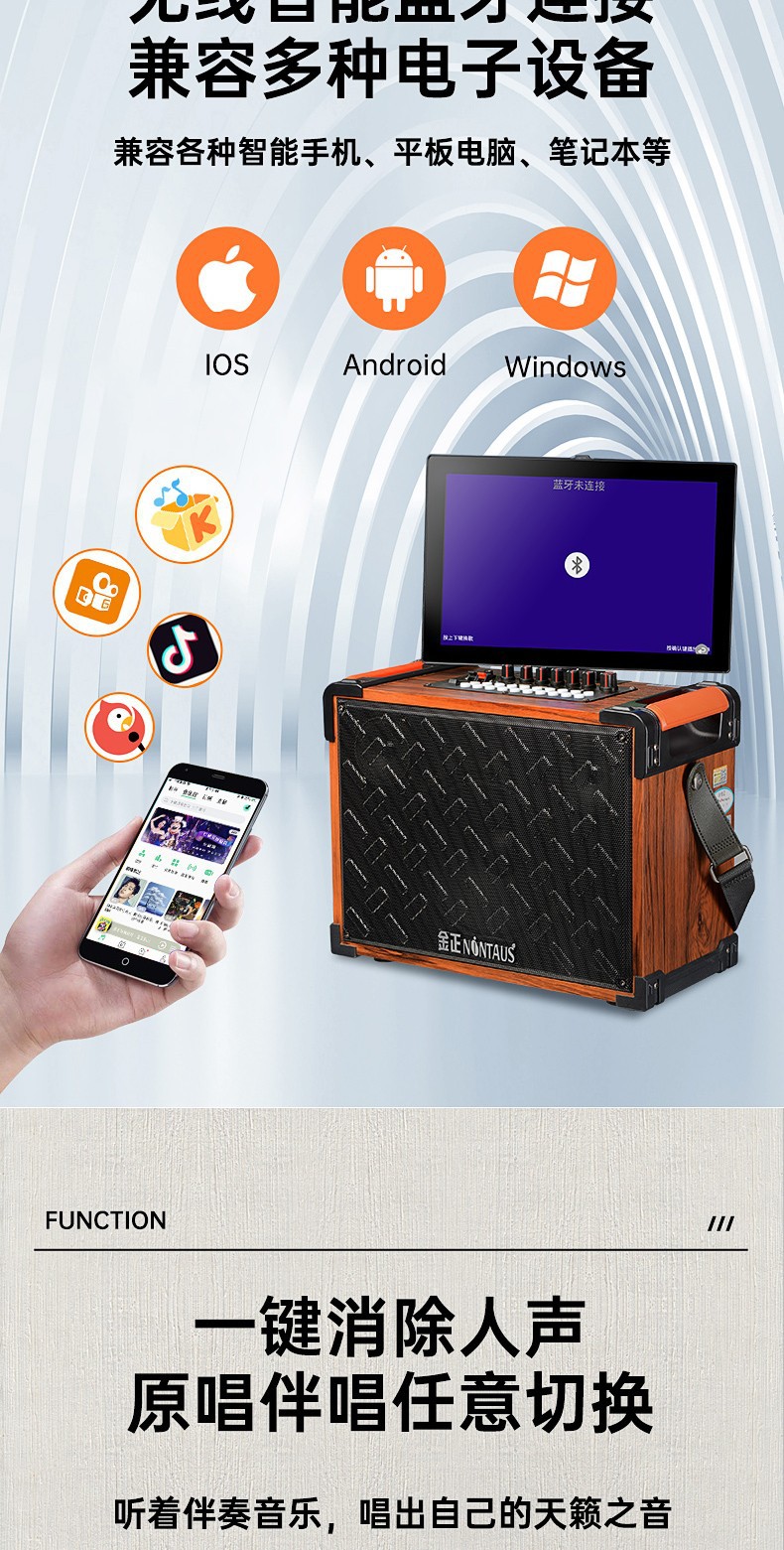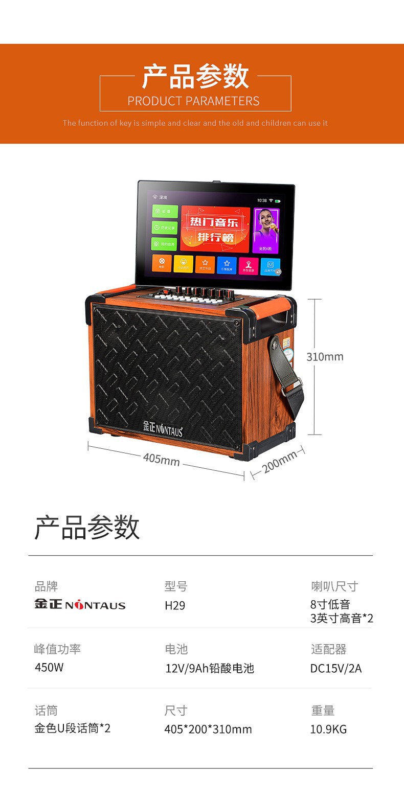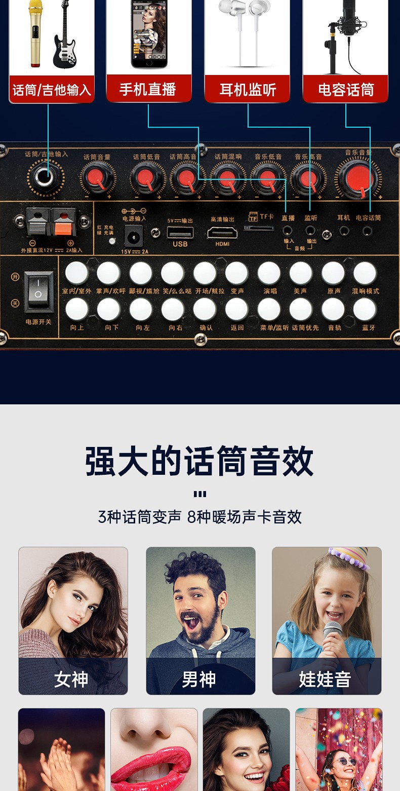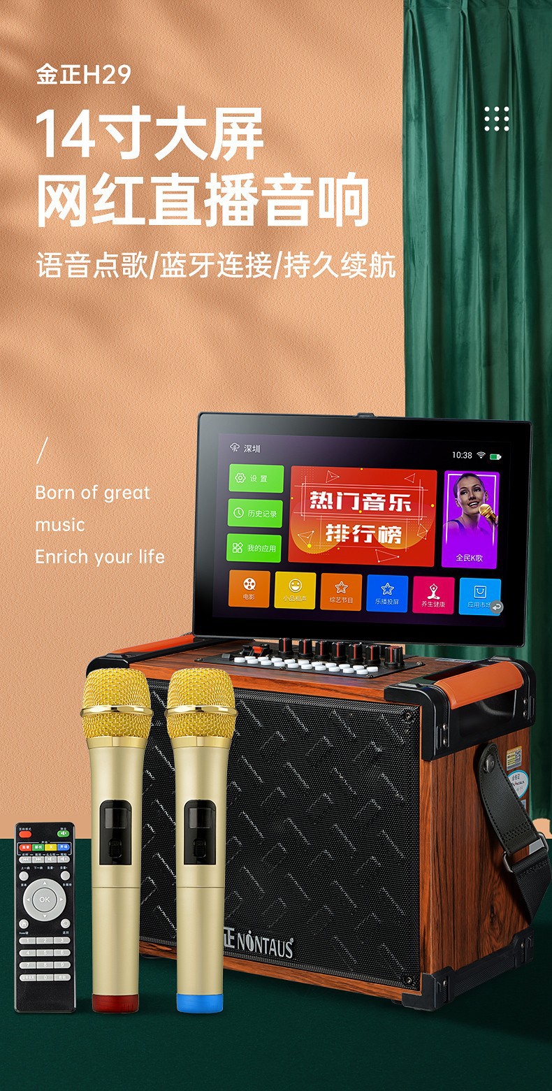 진정 H29 야외 라이브 비디오 오디오 휴대용 모바일 스퀘어 댄스 노래방 3 밴드 사운드 카드 디스플레이
