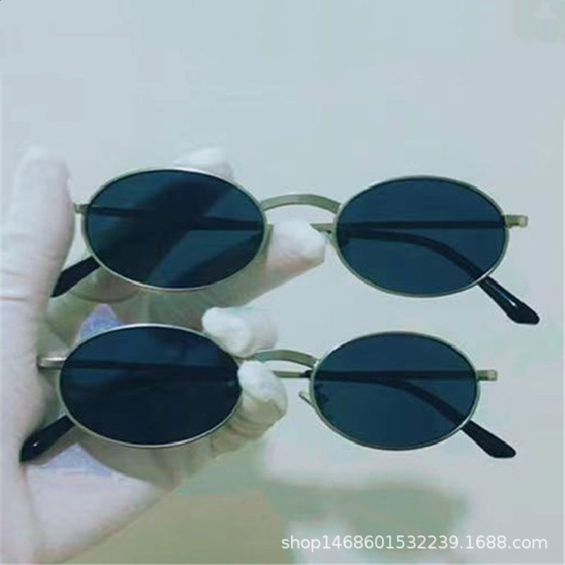 유럽과 미국의 기능성 선글라스 펑크 메탈 프레임 스틸 선글라스 트렌디 한 유명인 유명인 스타일 타원형 선글라스스토어 가기