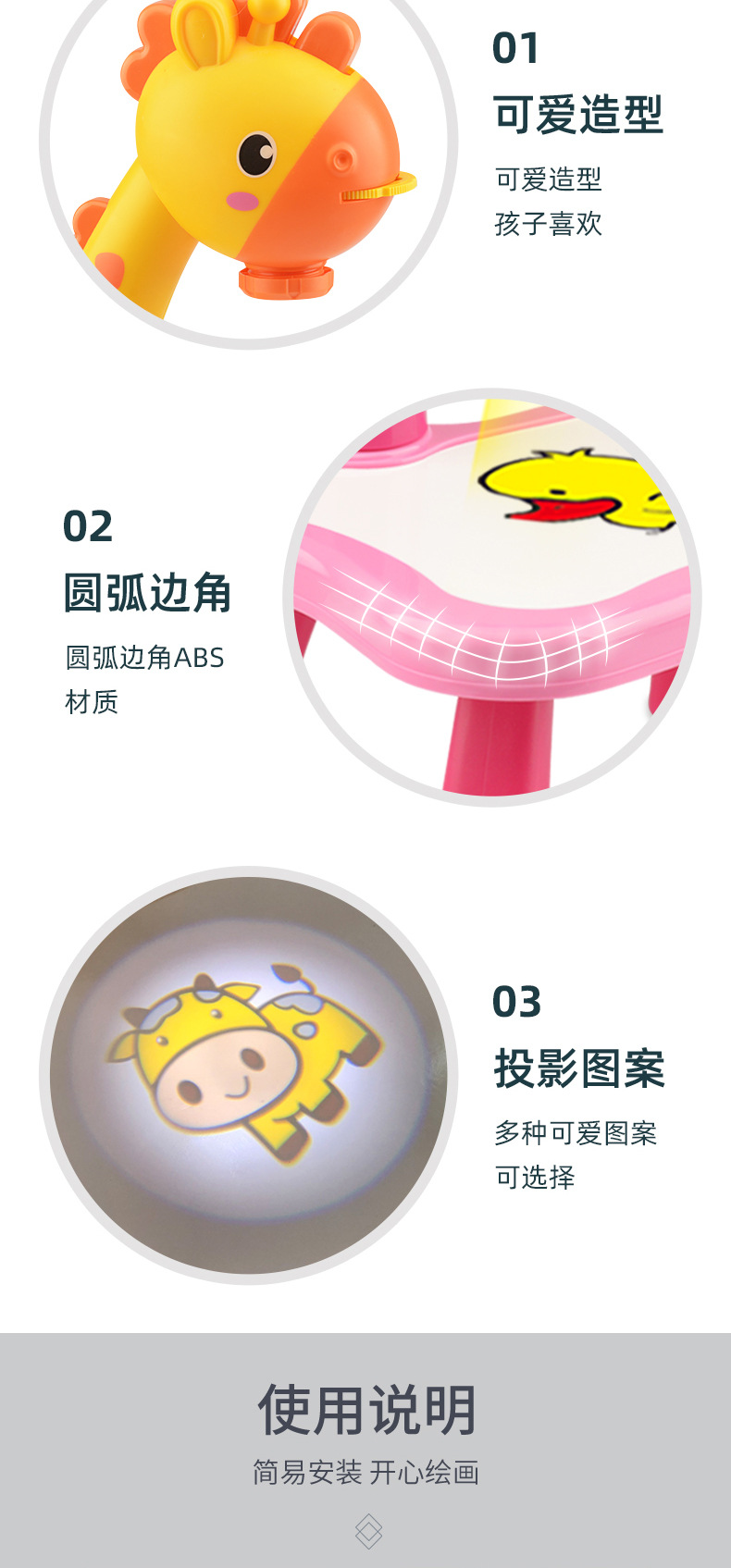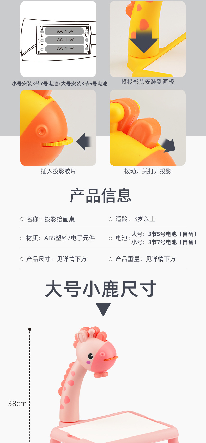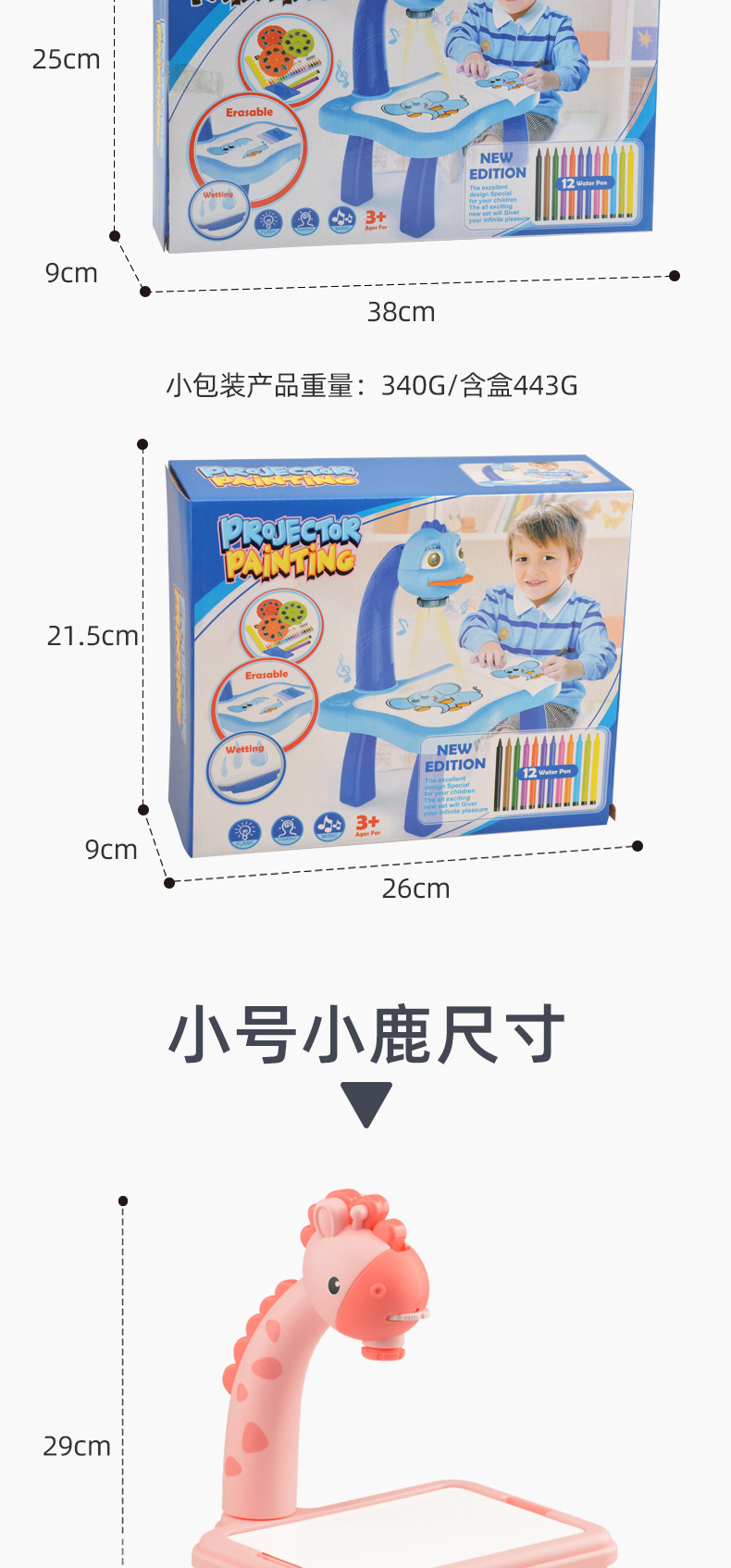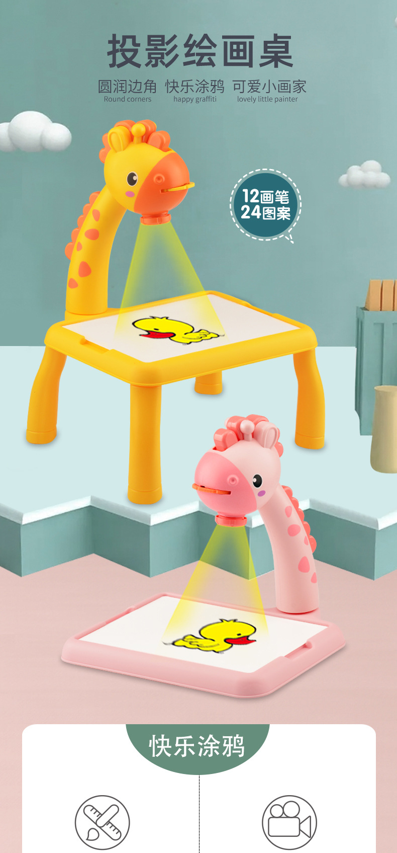 品名:6689小鹿投影画板(黄色/粉色)中文版