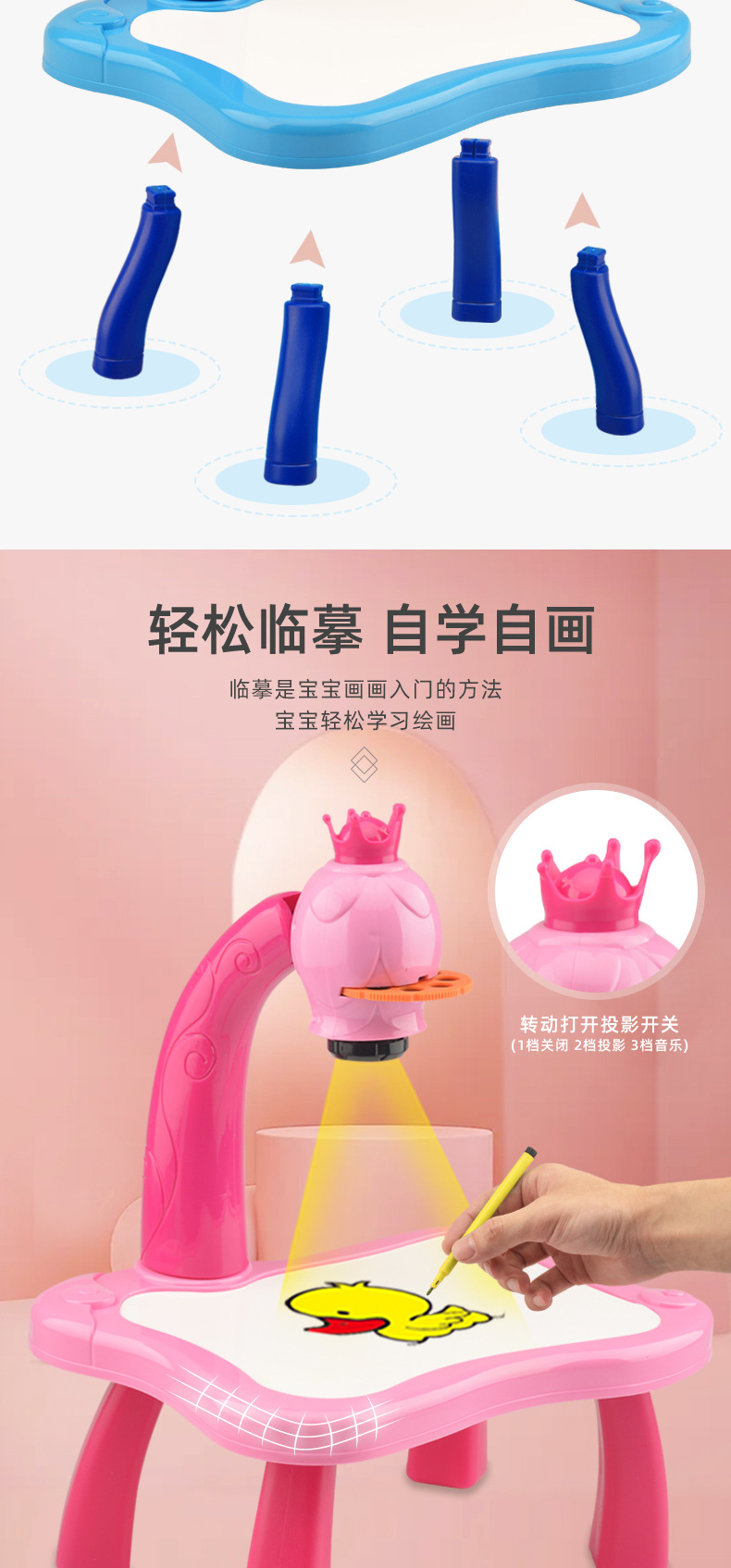 品名:6886投影绘画桌(蓝色)英文版