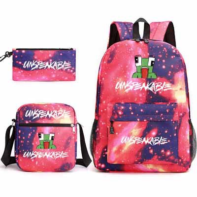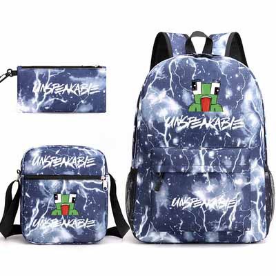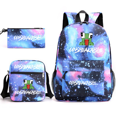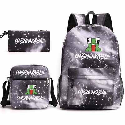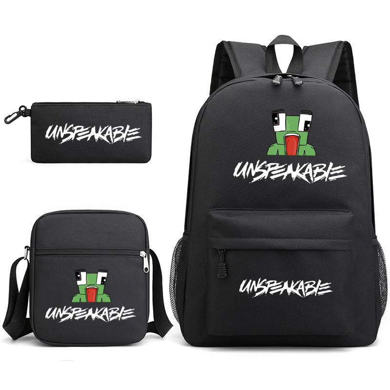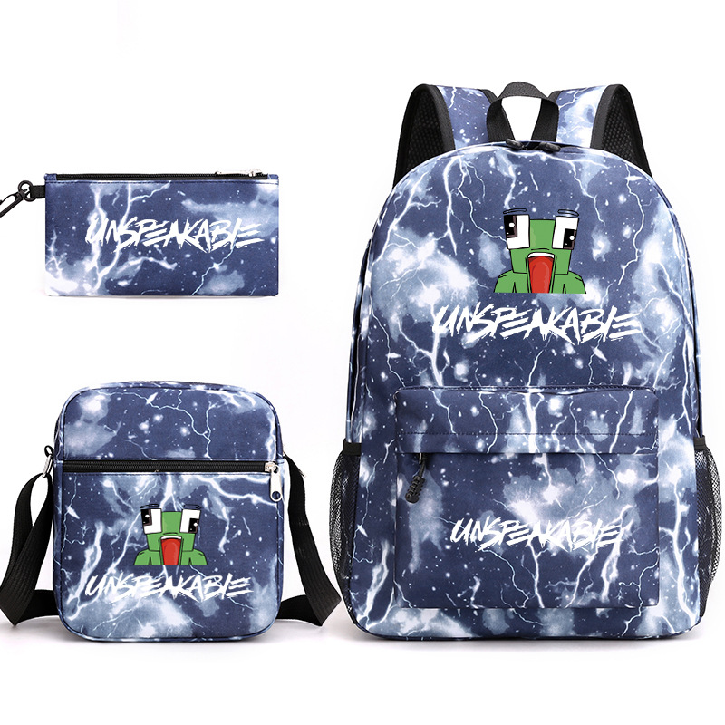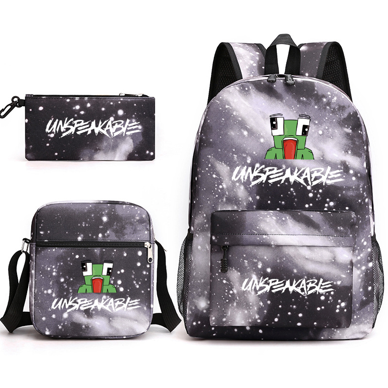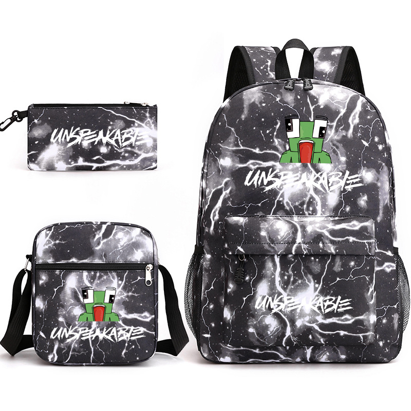UNSPEAKABLE 크리에이티브 패턴 캐주얼 백팩 숄더백 연필 가방 책가방 쓰리피스 여행 배낭