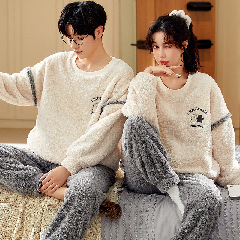 커플 잠옷 가을과 겨울 두꺼운 따뜻한 산호 양털 여자의 만화 겨울 플란넬 남자의 가정 옷 세트스토어 가기