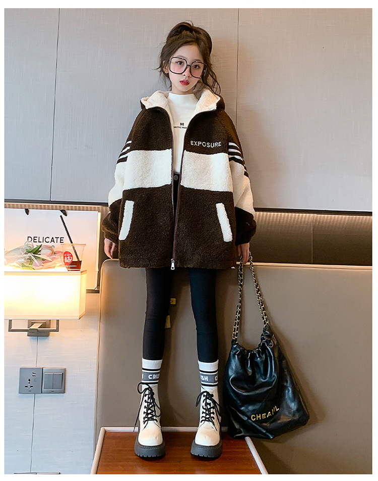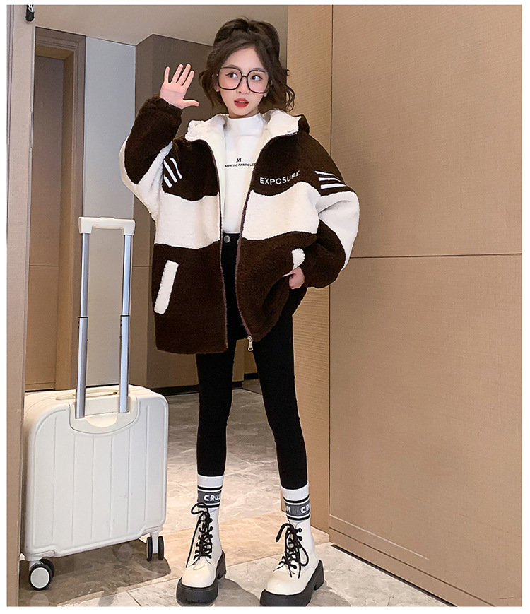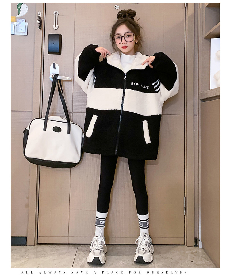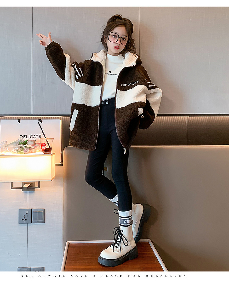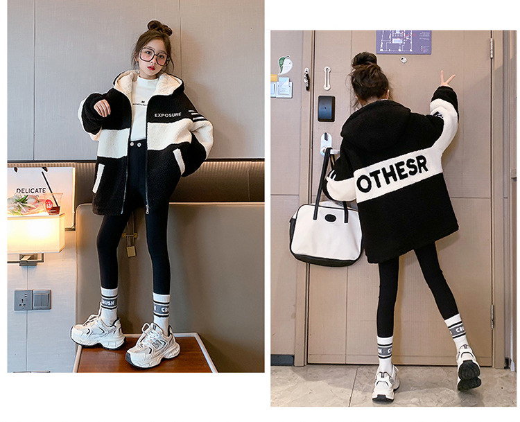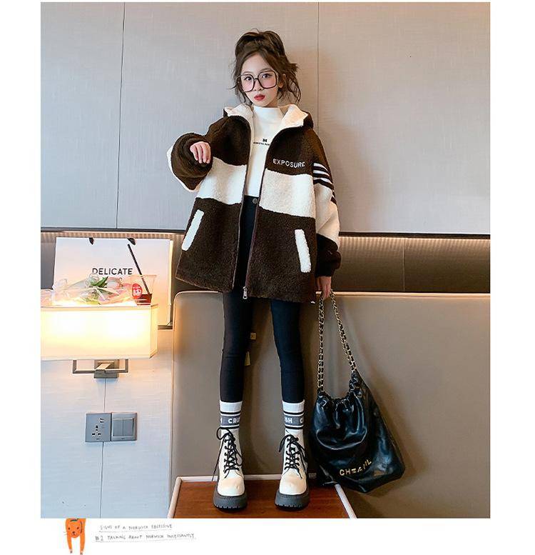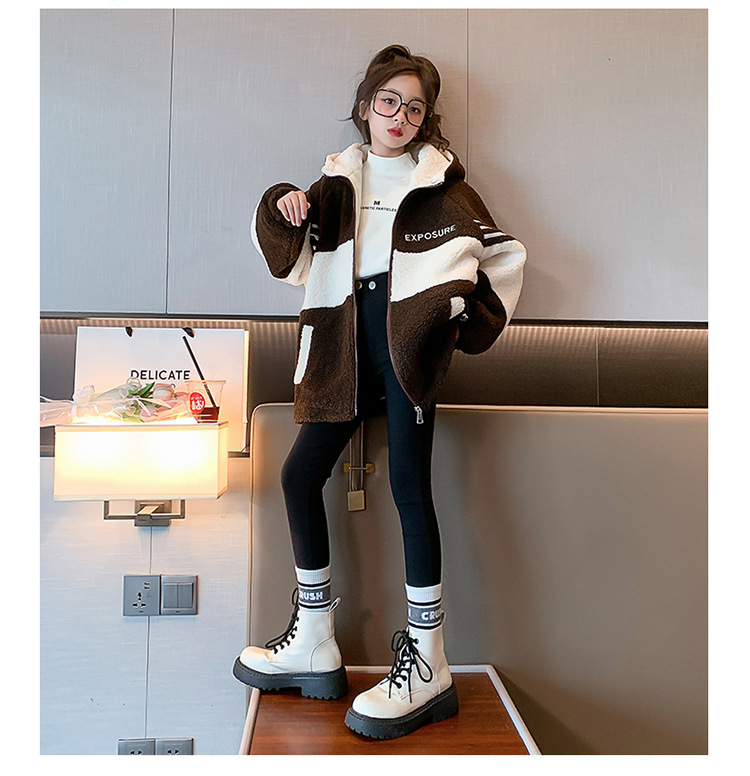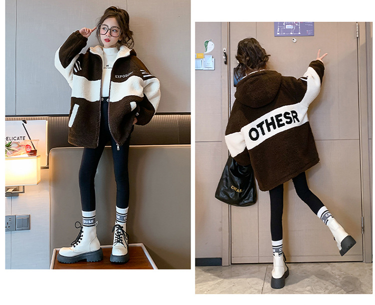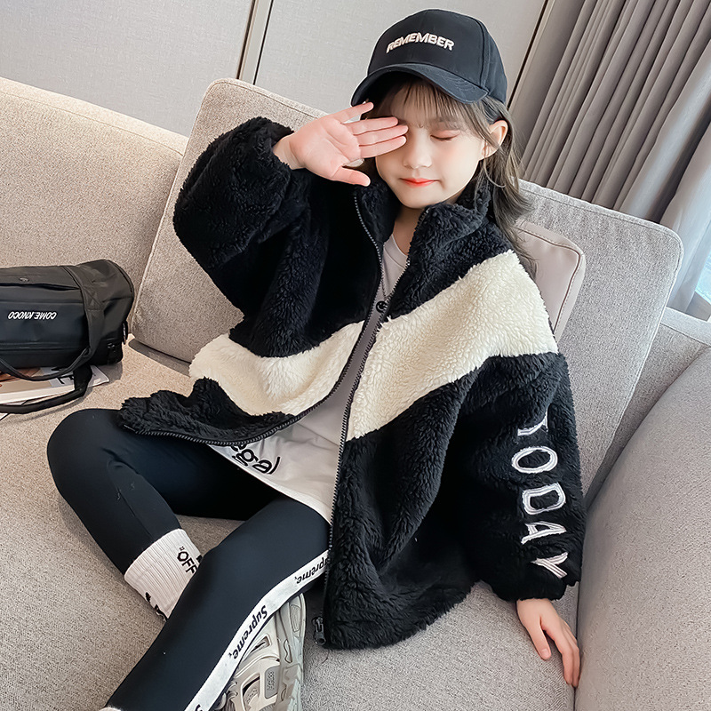여아 코트 가을과 겨울 새로운 스타일 양가죽 소녀의 모직 스웨터 10 세 어린이 기모 두꺼운 서양 스타일 가을과 겨울 스웨터