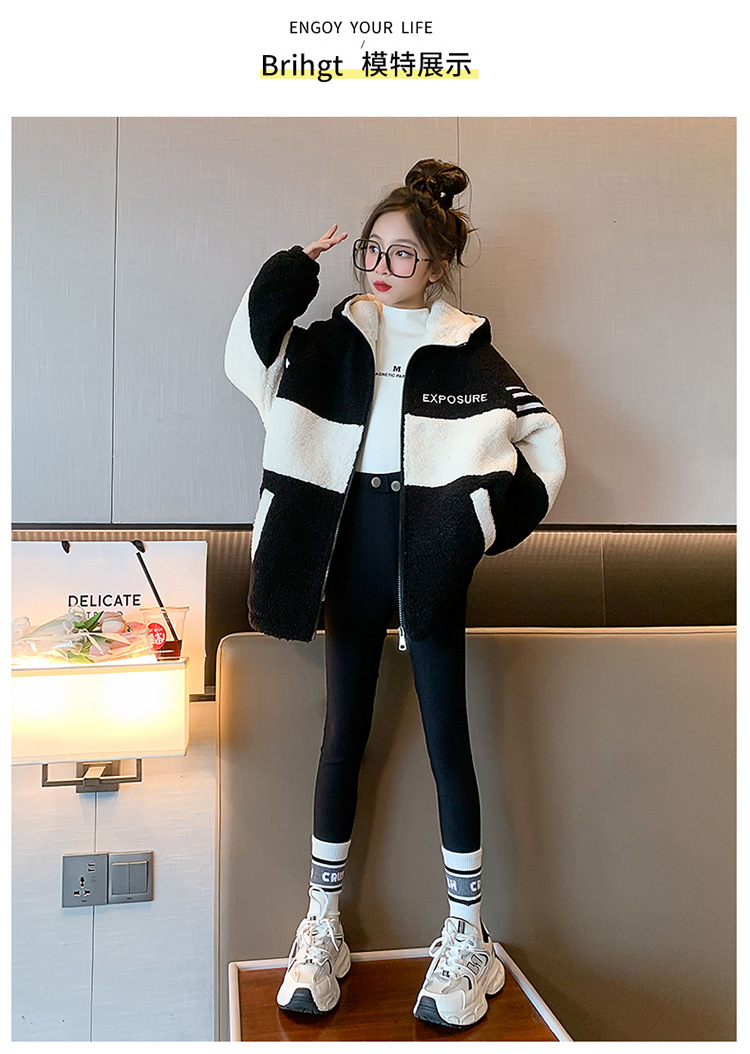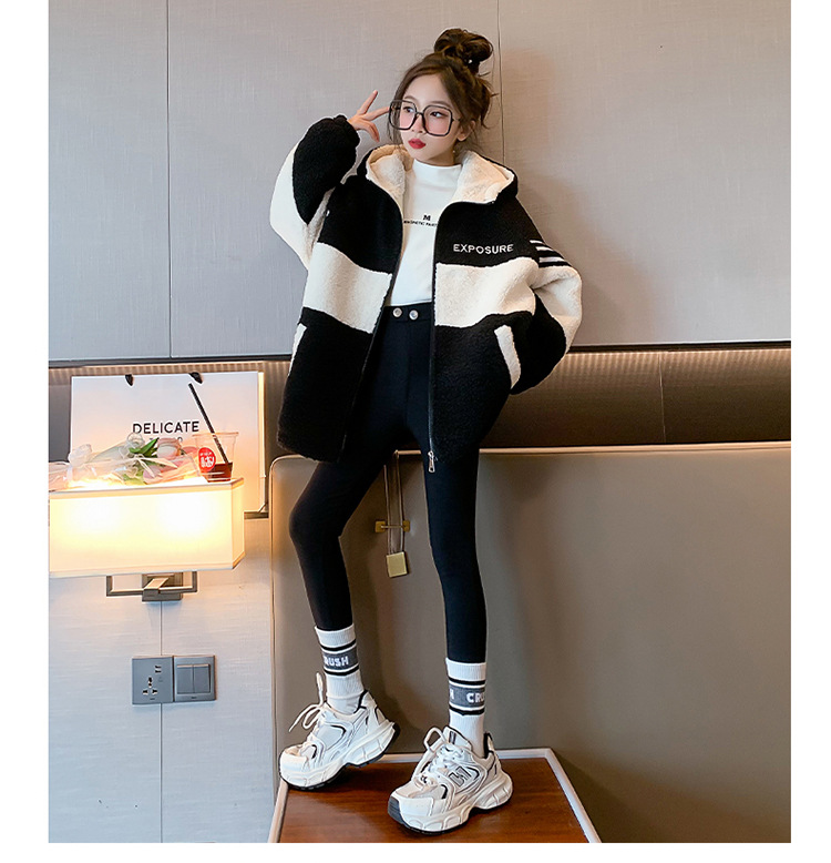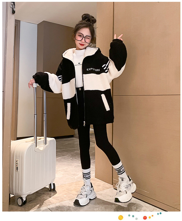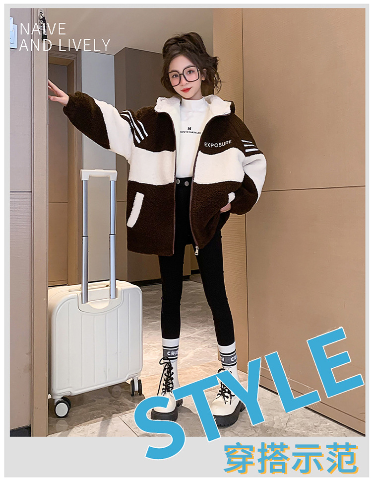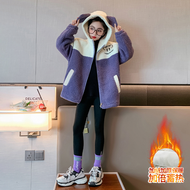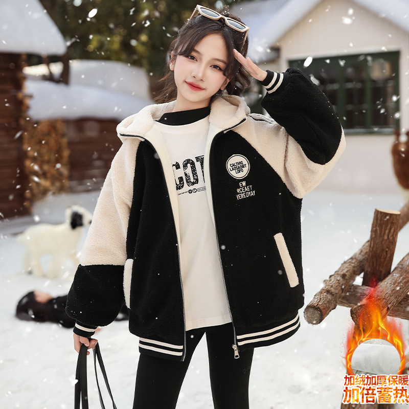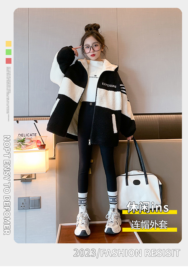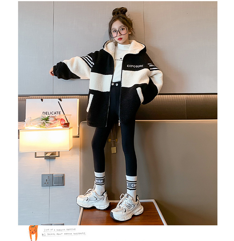 여아 코트 가을과 겨울 새로운 스타일 양가죽 소녀의 모직 스웨터 10 세 어린이 기모 두꺼운 서양 스타일 가을과 겨울 스웨터