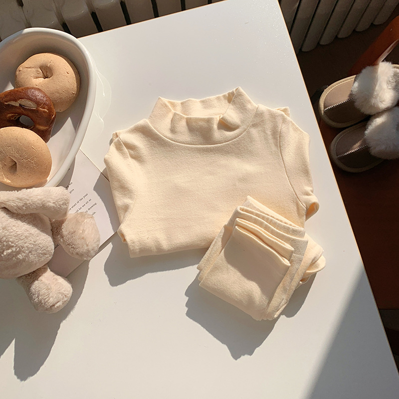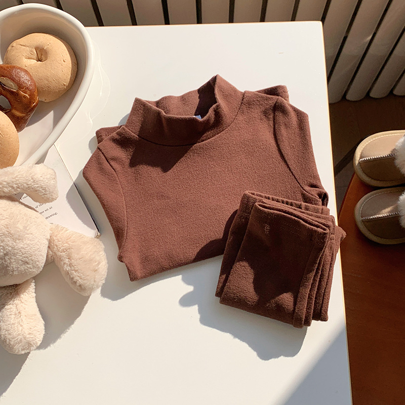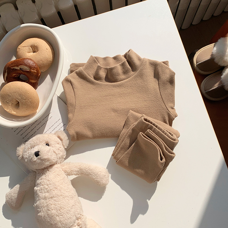 카테고리 A 소년 중간 칼라 잠옷 세트 가을과 겨울 어린이 긴팔 두꺼운 단색 어린이 소녀 샌딩 홈