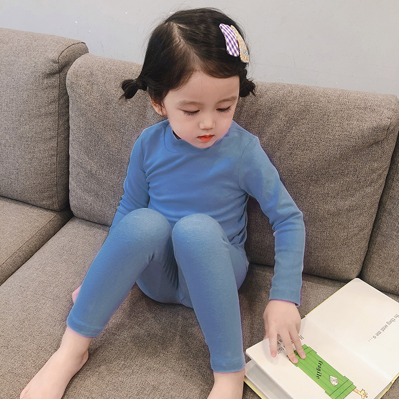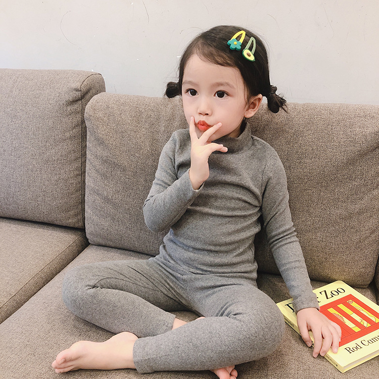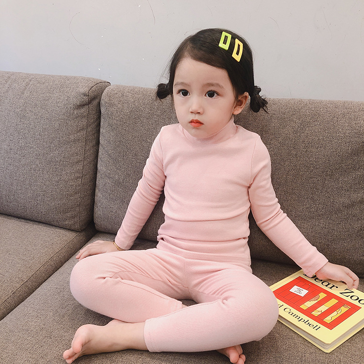 카테고리 A 소년 중간 칼라 잠옷 세트 가을과 겨울 어린이 긴팔 두꺼운 단색 어린이 소녀 샌딩 홈스토어 가기