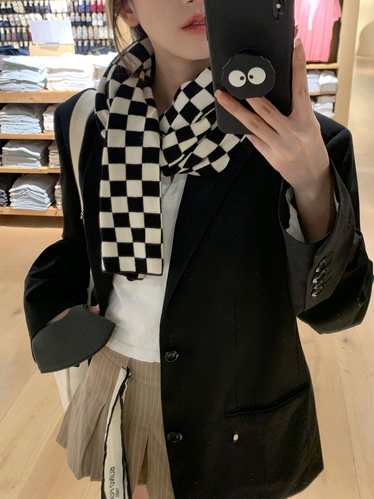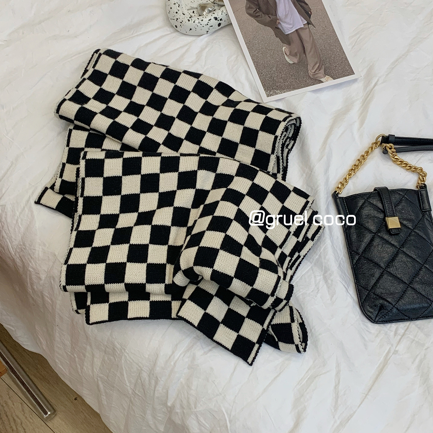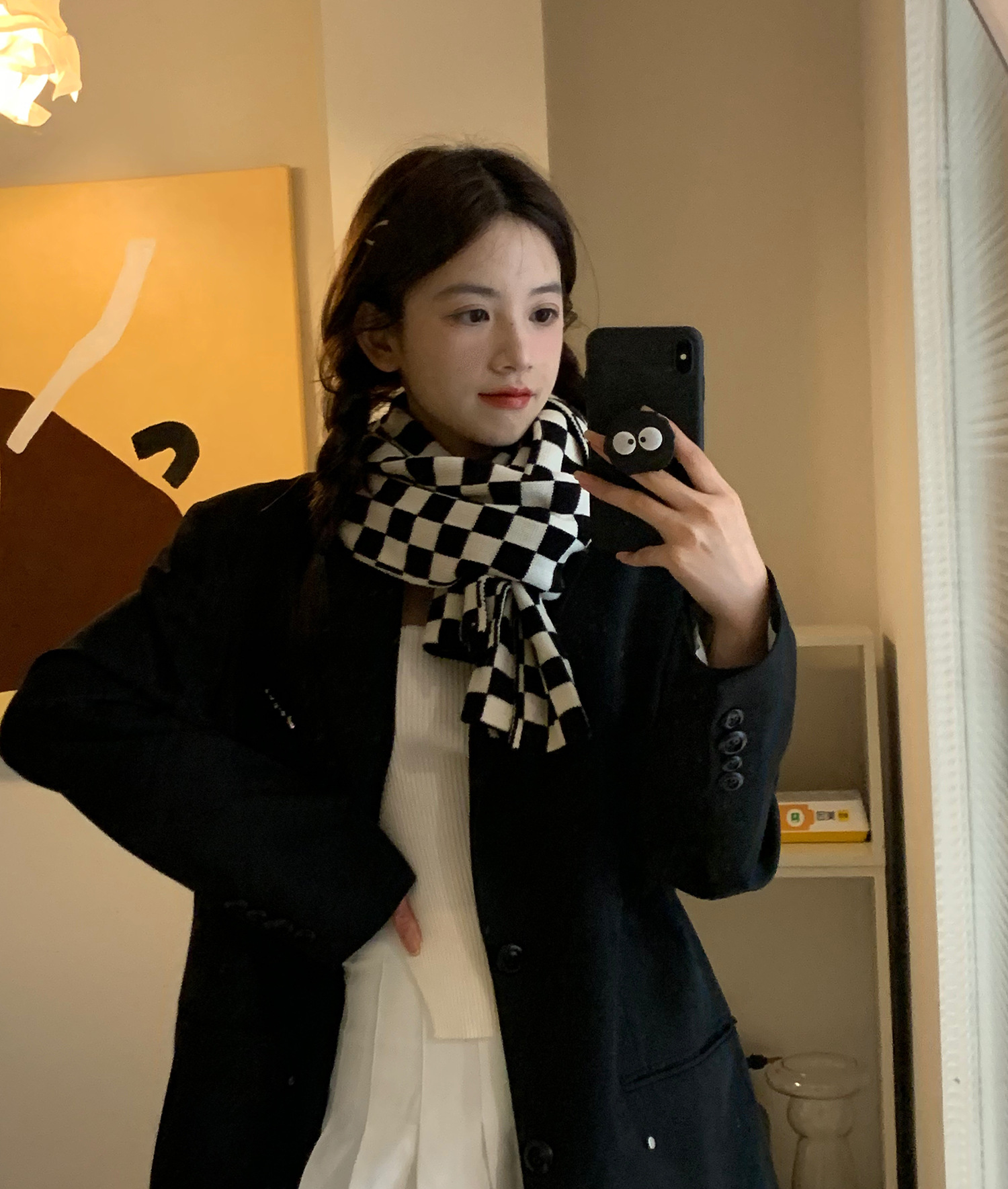 2021 가을과 겨울 새로운 인터넷 연예인 바둑판 스카프 여성용 겨울 흑백 격자 무늬 한국 스타일 모든 매치 가을과 겨울 따뜻한 스카프