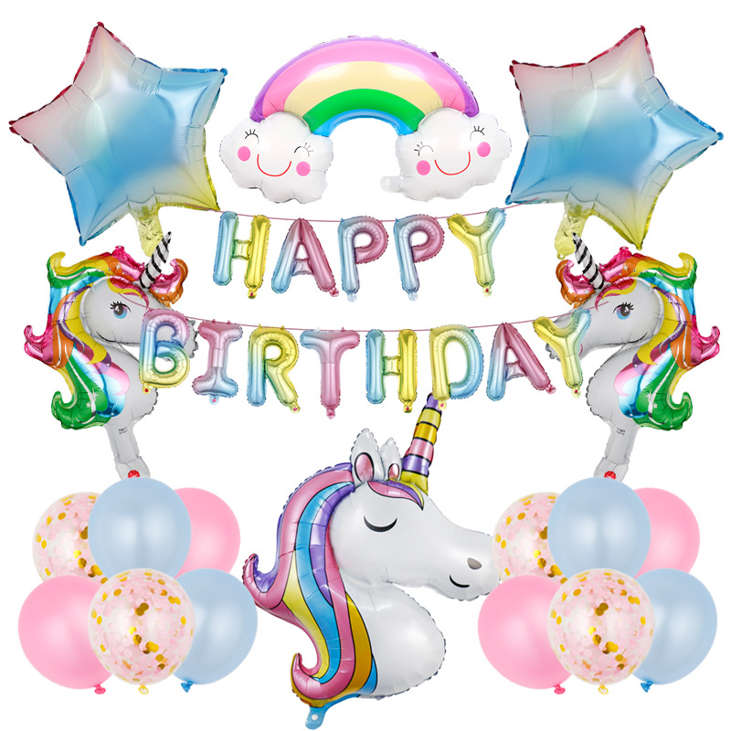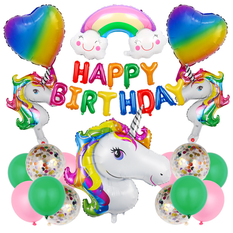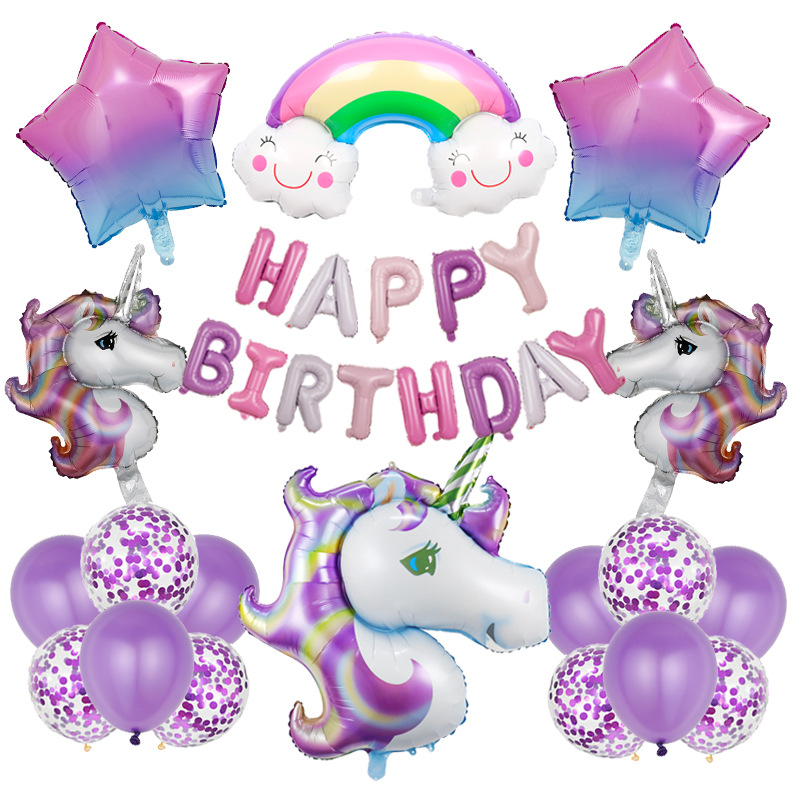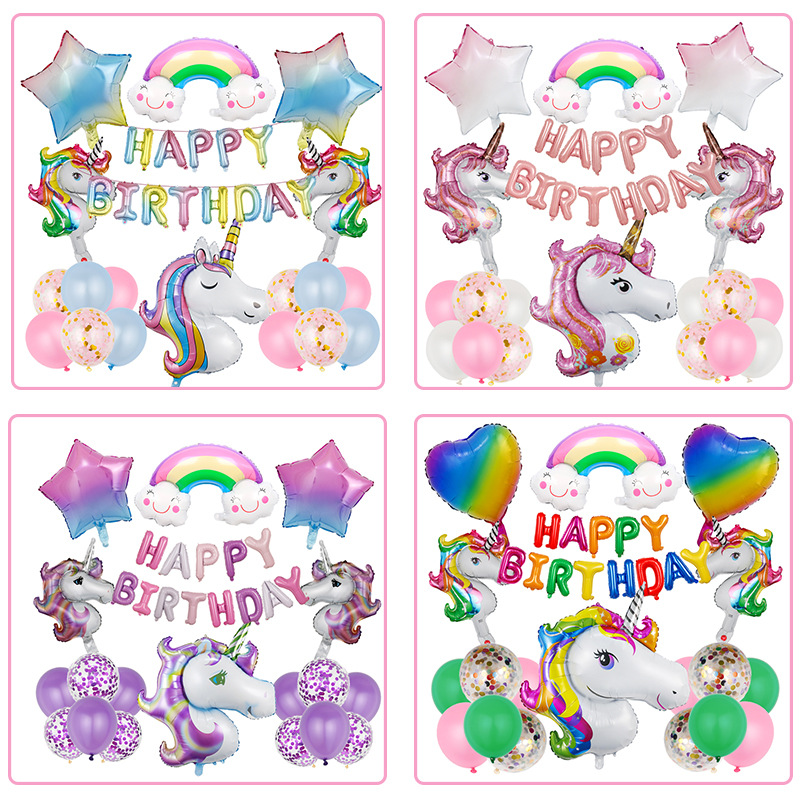 국경 간 만화 유니콘 머리 장식 알루미늄 필름 풍선 패키지 유니콘 말 생일 풍선 배열