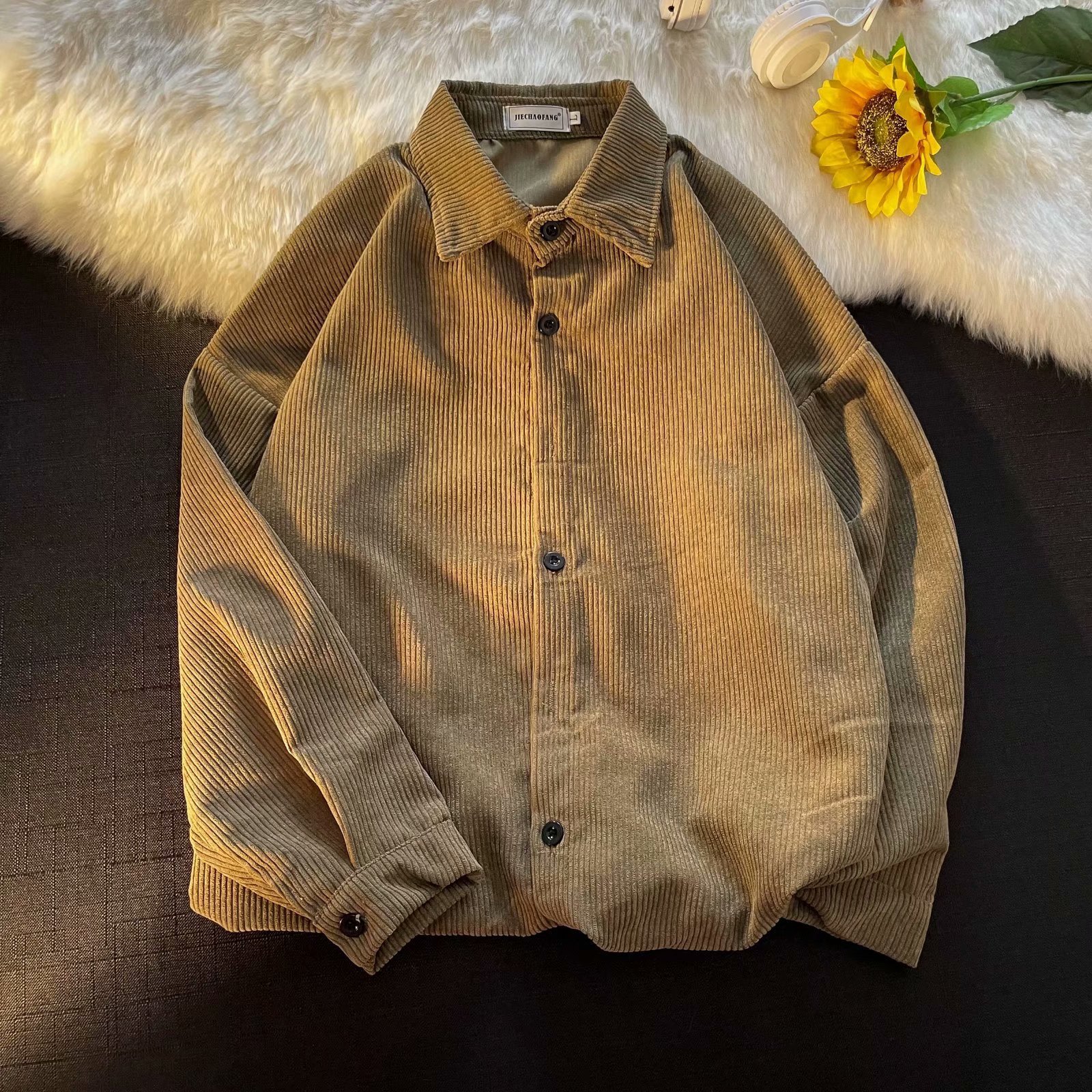 코듀로이 긴 소매 셔츠 여성의 봄과 가을 2021 새로운 봄과 가을 느슨한 셔츠 코트 디자인 감각 틈새 탑스토어 가기