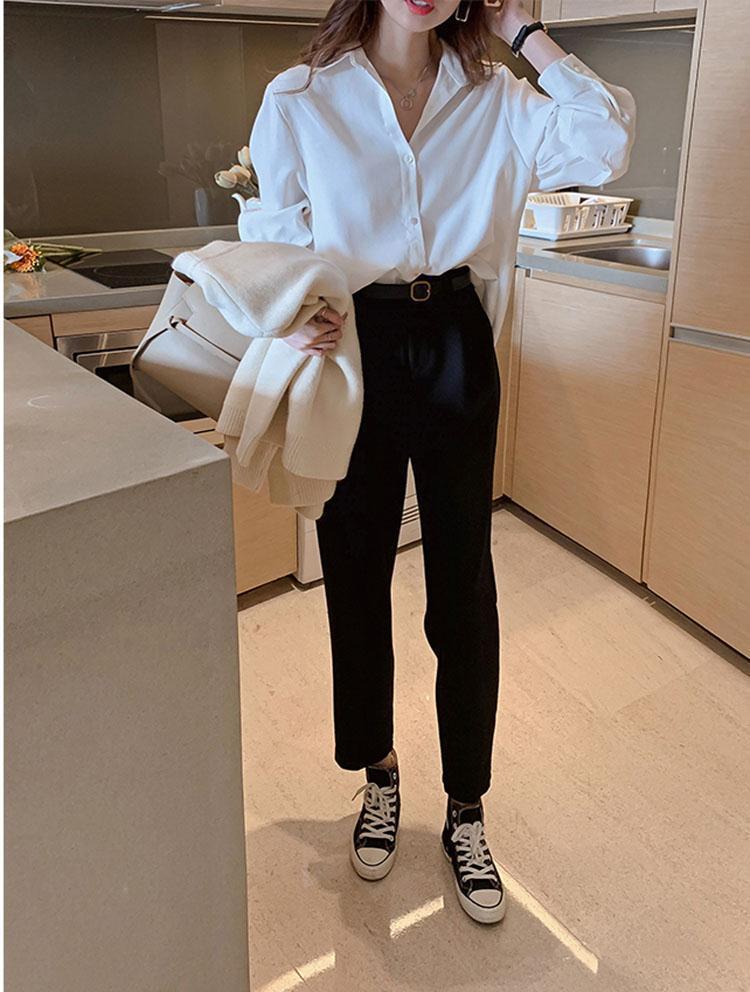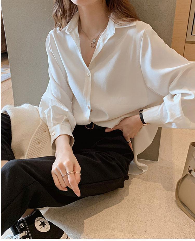 무료 배송 화이트 셔츠 여자의 2021 봄과 여름 한국 스타일 디자인 감각 틈새 플러스 사이즈 느슨한 전문 세트 베이스 셔츠 쉬폰스토어 가기
