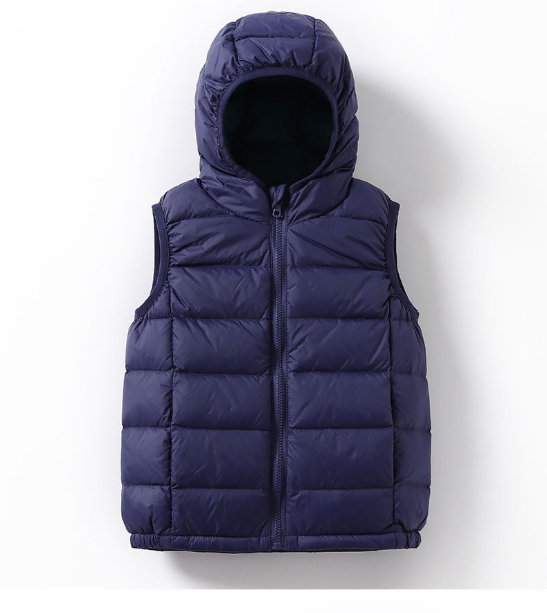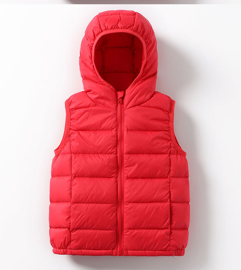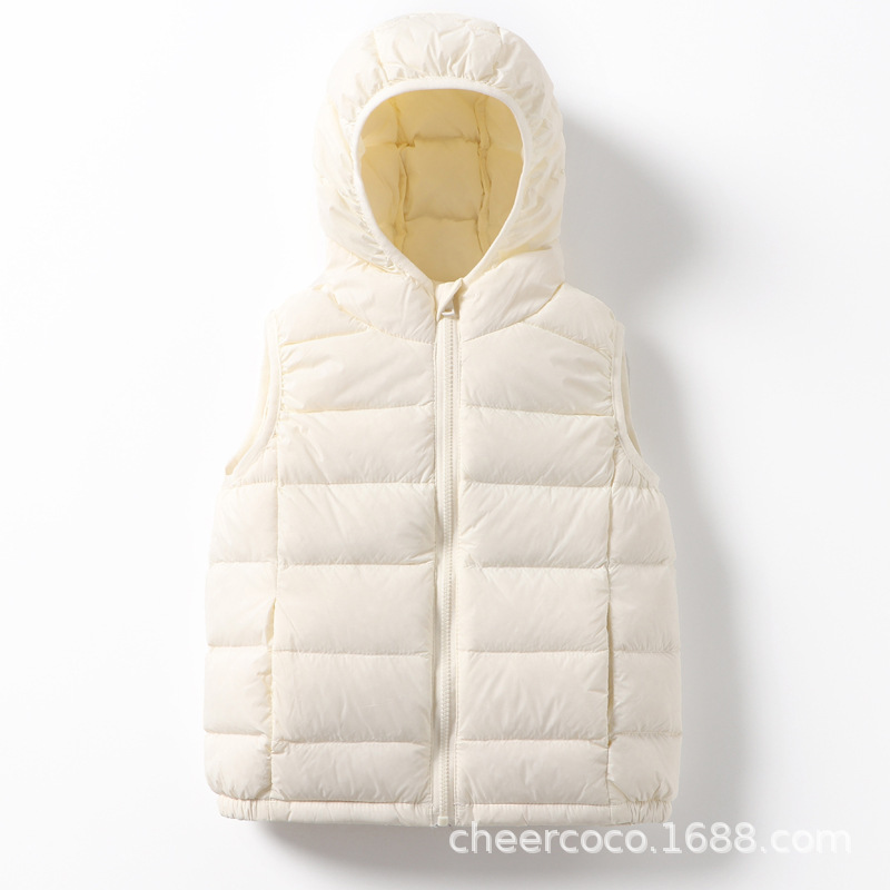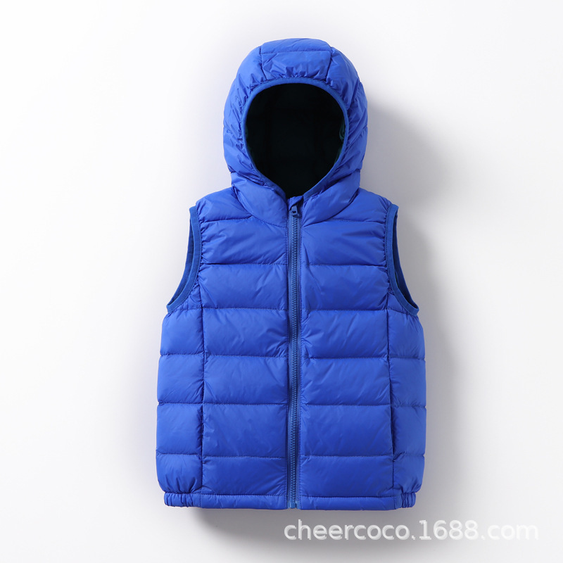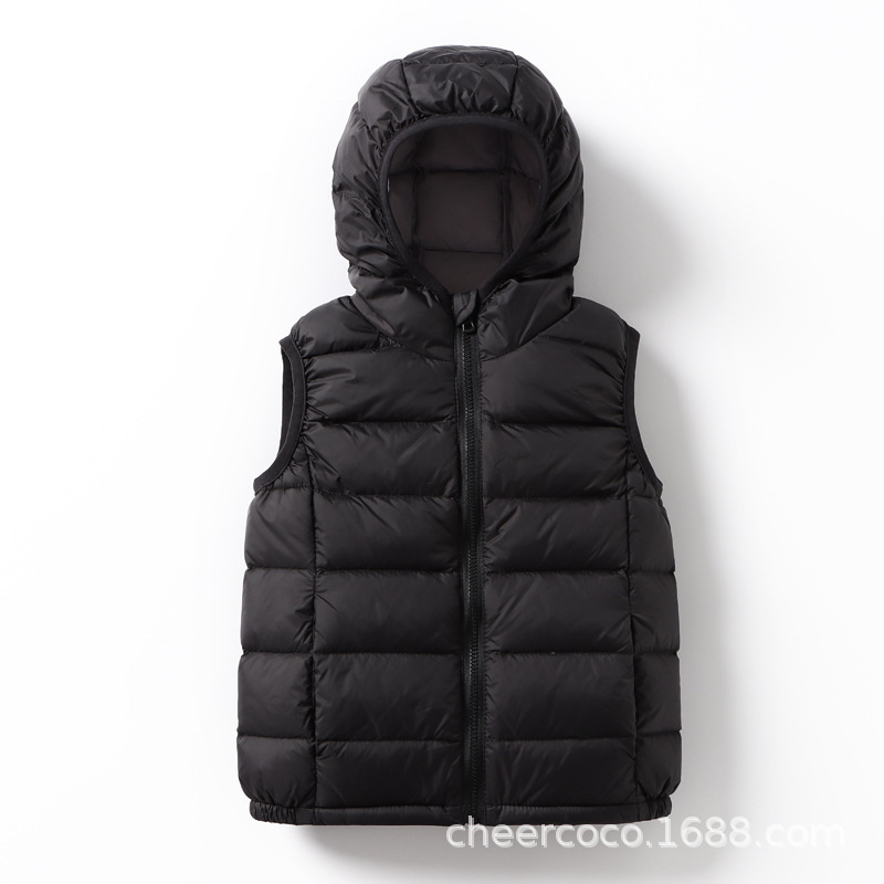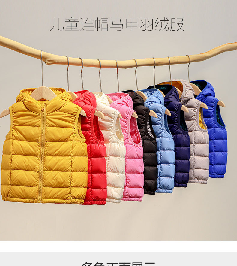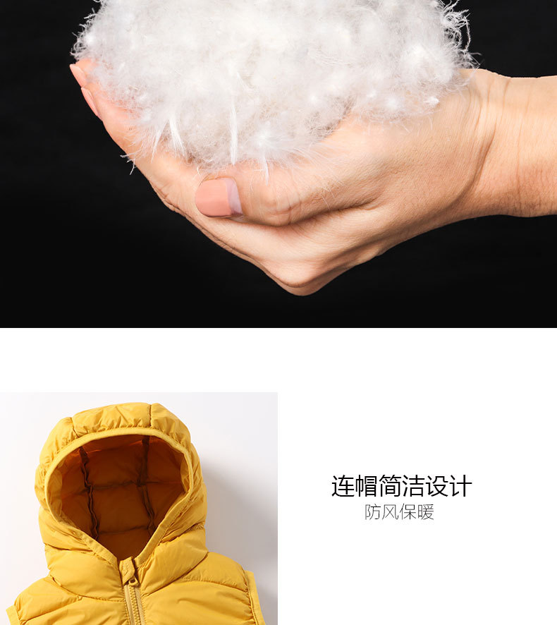 가을과 겨울에 후드 경량 어린이 다운 조끼 대형 어린이 아기 소년 소녀 겉옷 내부 용기