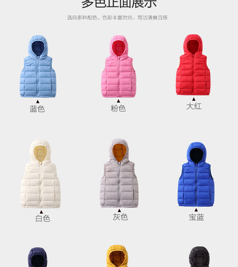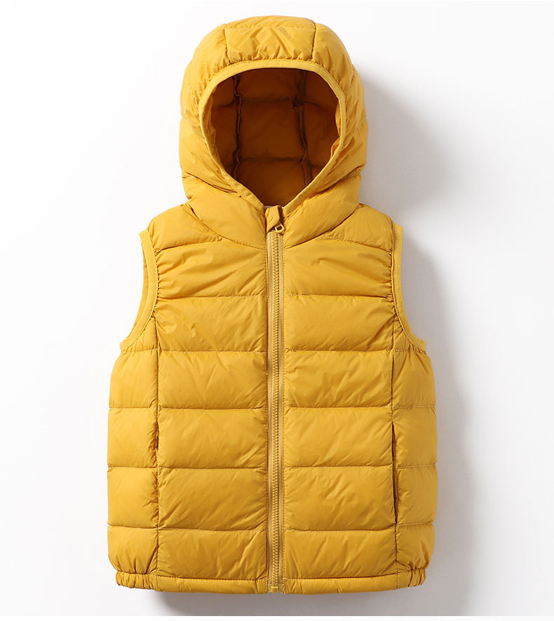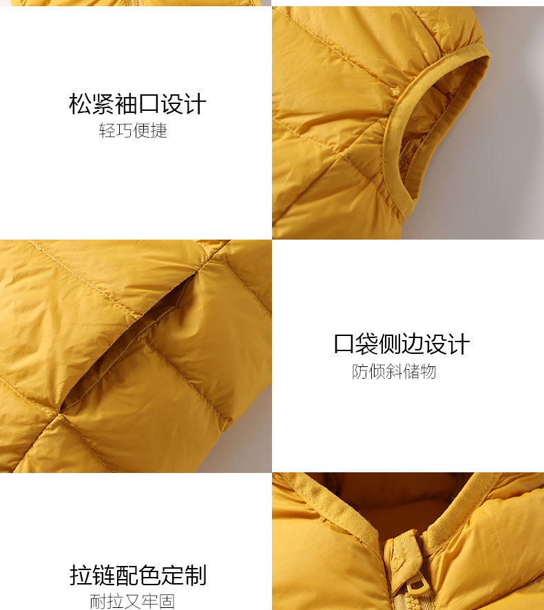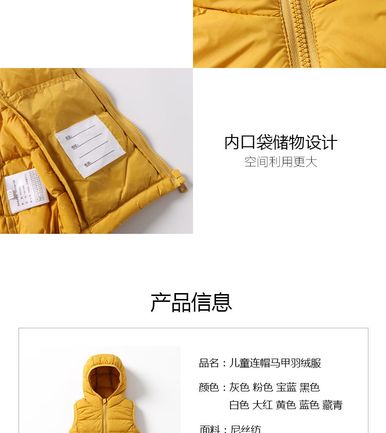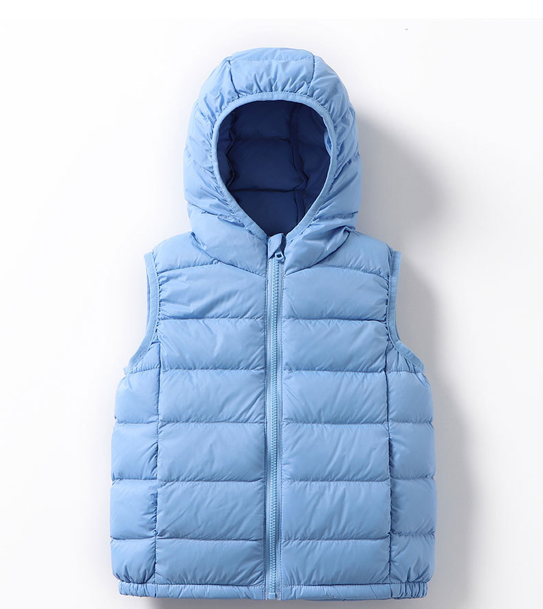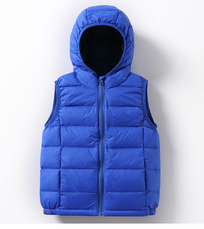 가을과 겨울에 후드 경량 어린이 다운 조끼 대형 어린이 아기 소년 소녀 겉옷 내부 용기