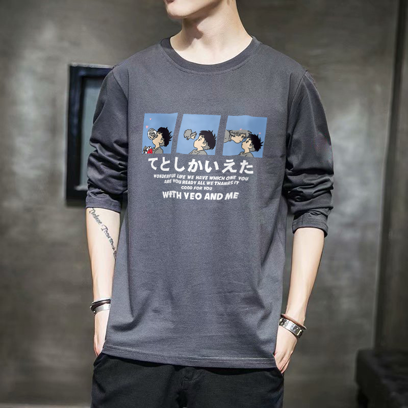 가을 새로운 긴팔 티셔츠 남성용 크루 넥 바텀 셔츠 한국 풀오버 봄과 가을 슬림 핏 티셔츠 세대 안에스토어 가기