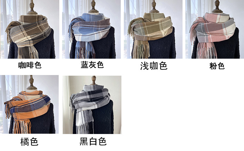 격자 무늬 스카프 여성 가을, 겨울 새로운 한국어 복고풍 목도리 일본 학생 모조 캐시미어 따뜻한 술 스카프 도매스토어 가기