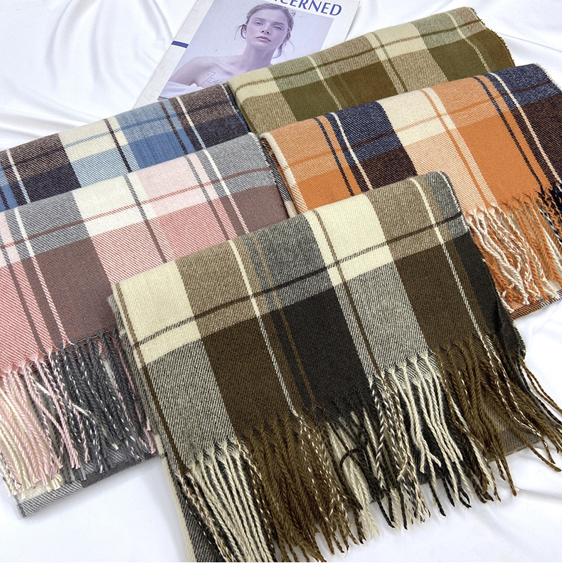 격자 무늬 스카프 여성 가을, 겨울 새로운 한국어 복고풍 목도리 일본 학생 모조 캐시미어 따뜻한 술 스카프 도매