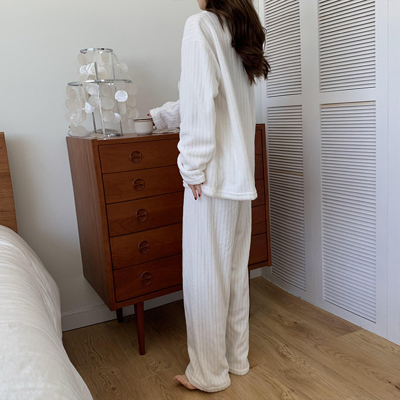 가을 겨울 산호 양털 파자마 여성용 긴팔 두꺼운 홈 의류 초승달 복숭아 면 양털 플러스 사이즈 패션 여성 세트스토어 가기