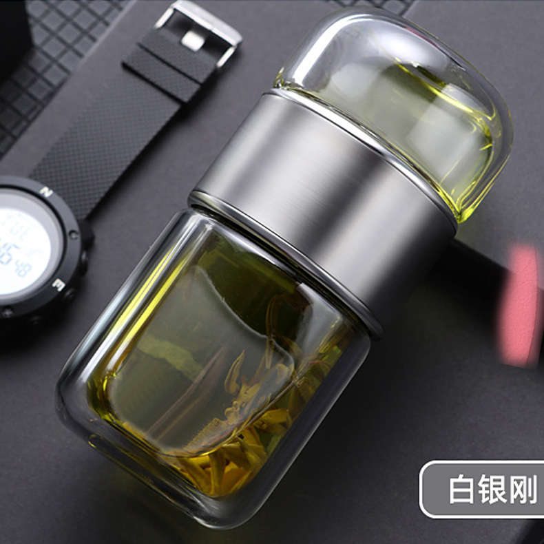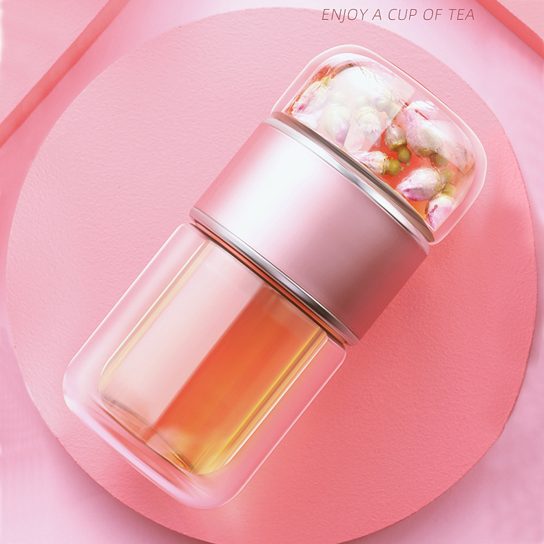 여름용 인기 여성용 휴대용 이중 단열 유리컵 뚜껑 포함 차컵 차와 물 분리 컵 고온 저항스토어 가기