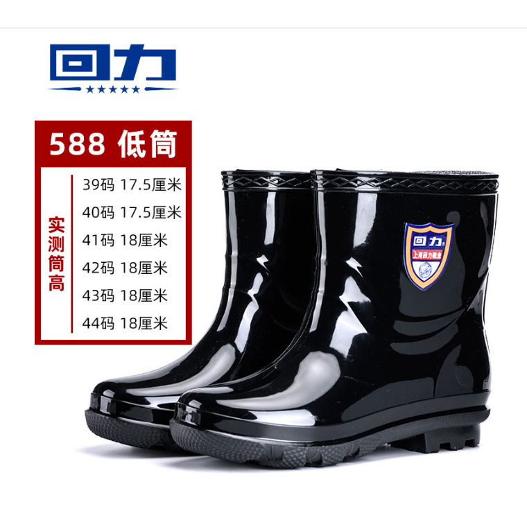 Huili 588 로우 배럴 블랙 레인 부츠 방수 미끄럼 방지 레인 부츠 pvc 내마모성 39-44 # 노동 물 신발스토어 가기