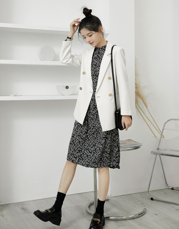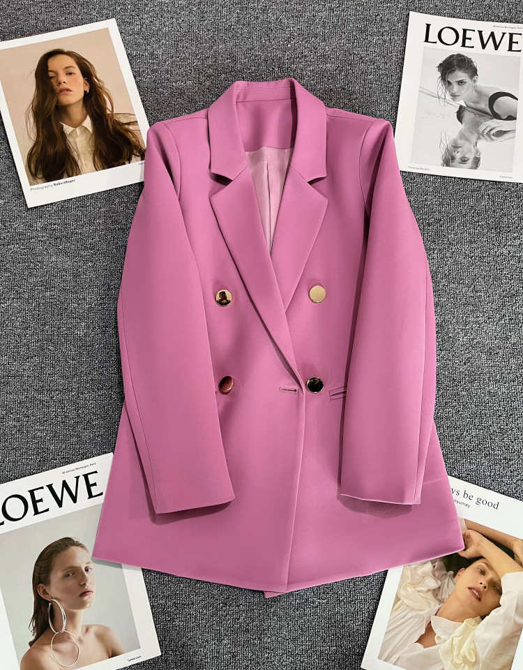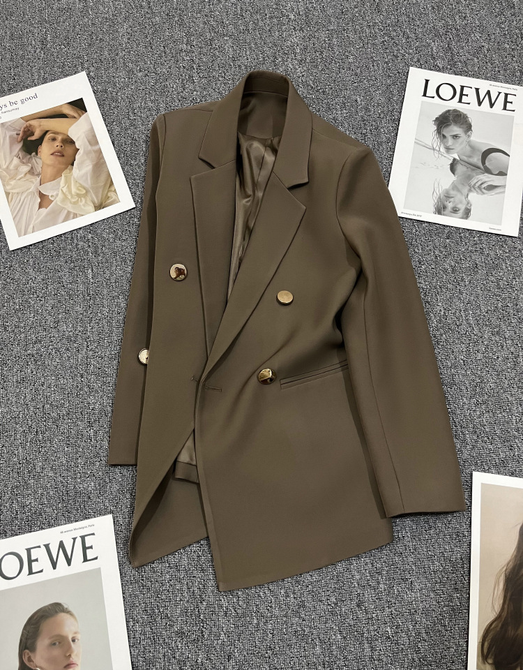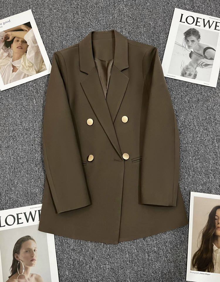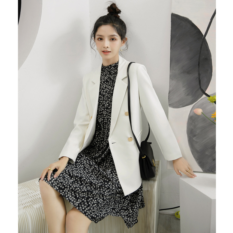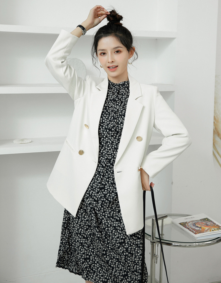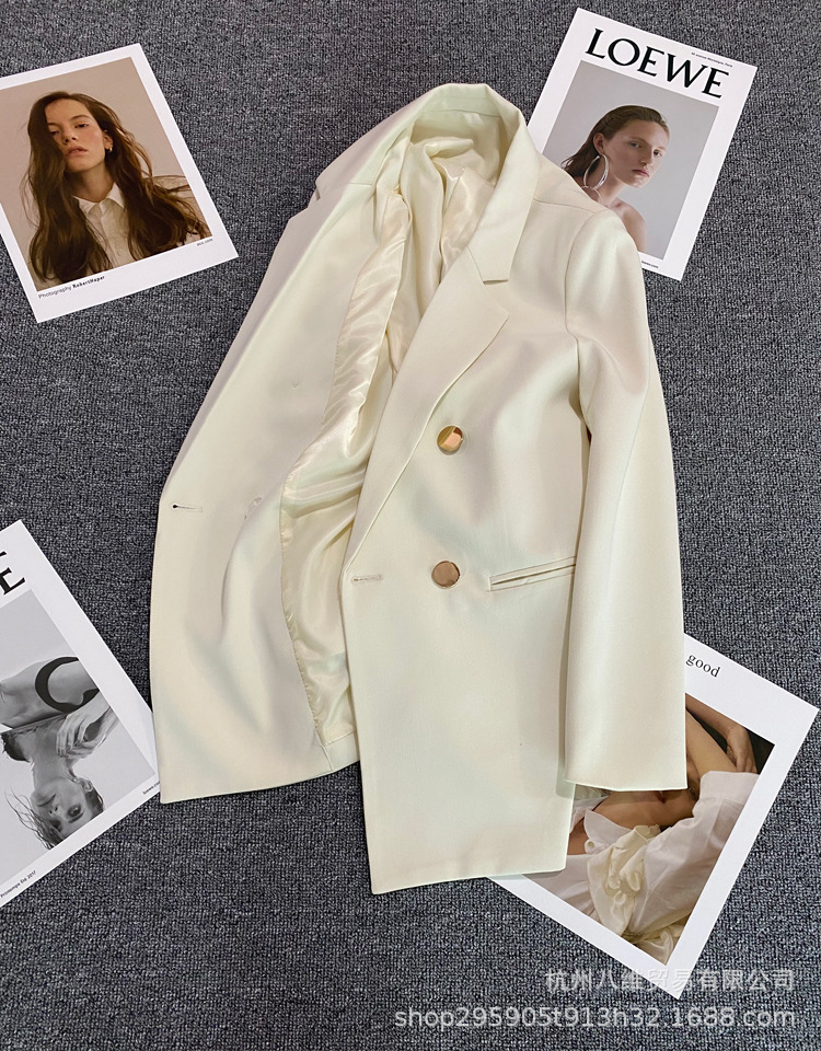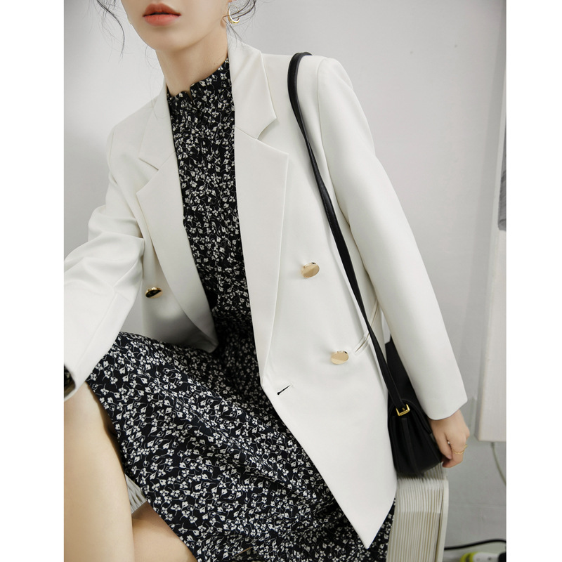 2025 봄과 가을 새로운 정장 재킷 여성 금속 버클 영국 스타일 캐주얼 다목적 밀키 화이트 작은 정장스토어 가기