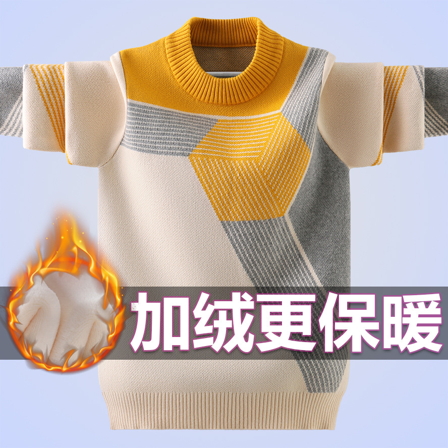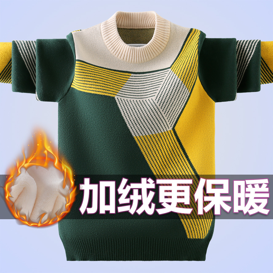 소년 스웨터 풀오버 가을과 겨울 중간 및 큰 아이들은 기모 두꺼워 진 어린이 니트 바닥 셔츠면 따뜻한 소년 겨울