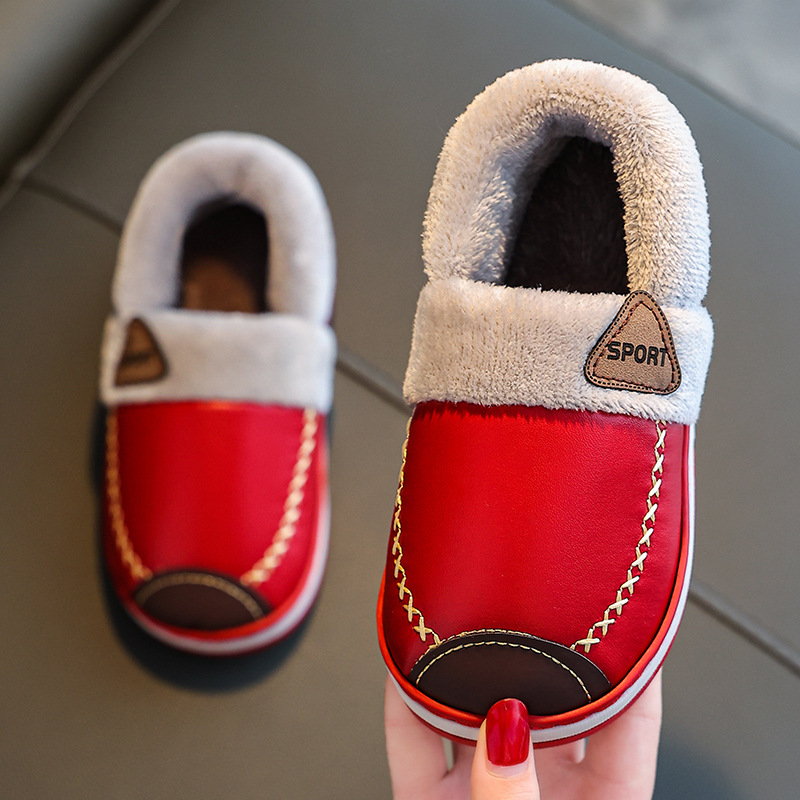 어린이 면화 신발 여성의 겨울 따뜻한 남자의 Pu 가죽 방수 홈 미끄럼 방지 기모 두꺼운 야외 부드러운 단독 신발