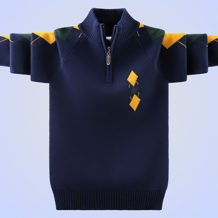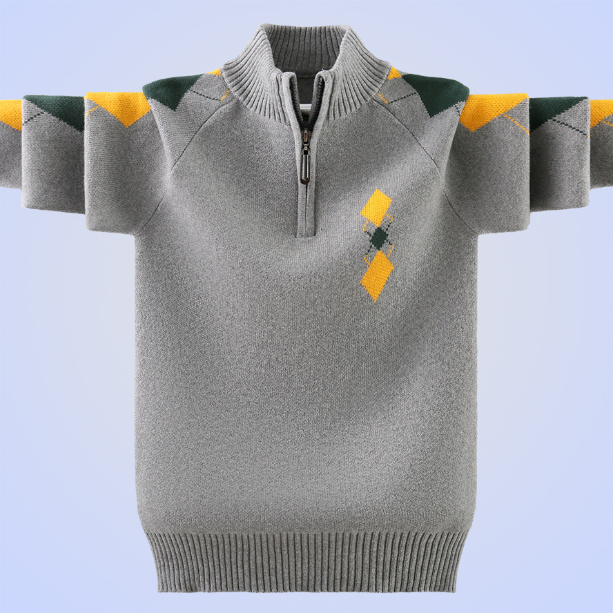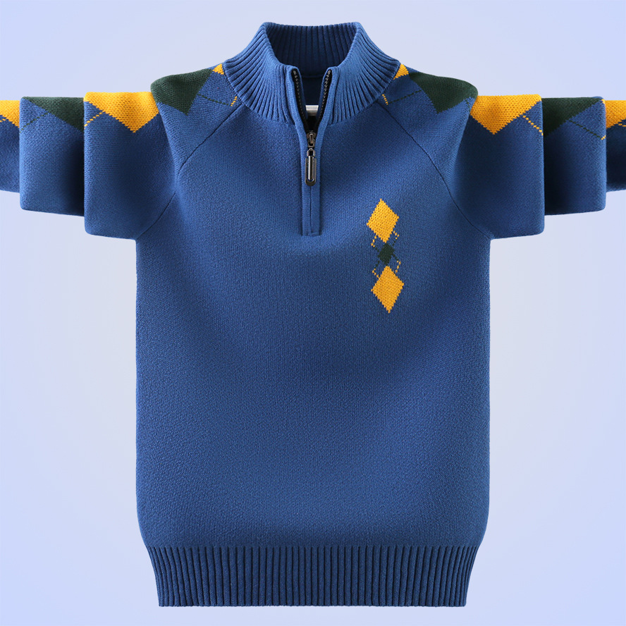 소년 스웨터 스탠드 칼라 잘 생긴 소년 반 지퍼 겨울 기모 두꺼운 스웨터 어린이 겨울 따뜻한 옷