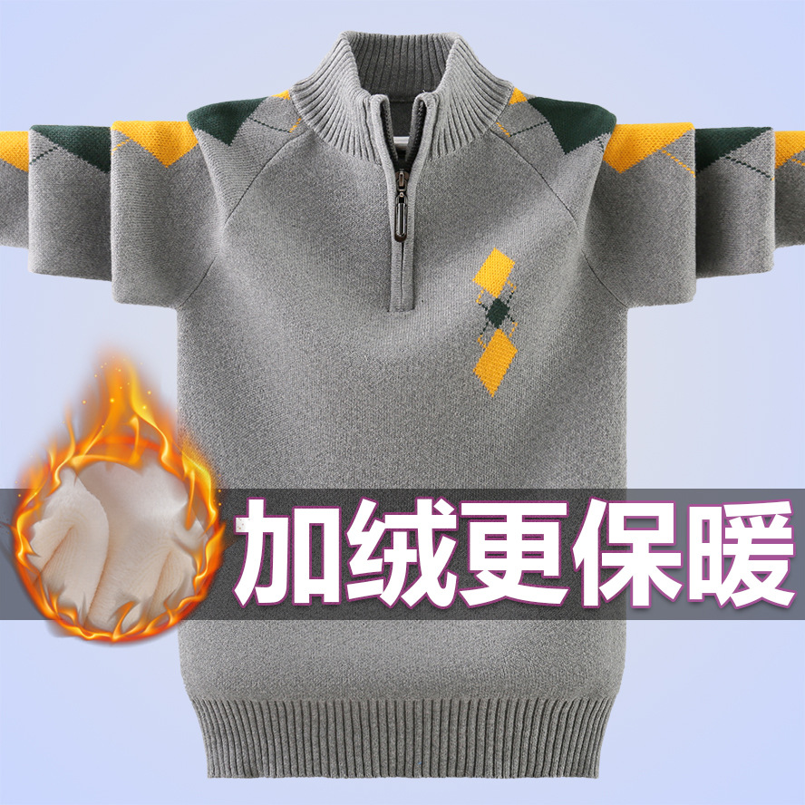 소년 스웨터 스탠드 칼라 잘 생긴 소년 반 지퍼 겨울 기모 두꺼운 스웨터 어린이 겨울 따뜻한 옷스토어 가기