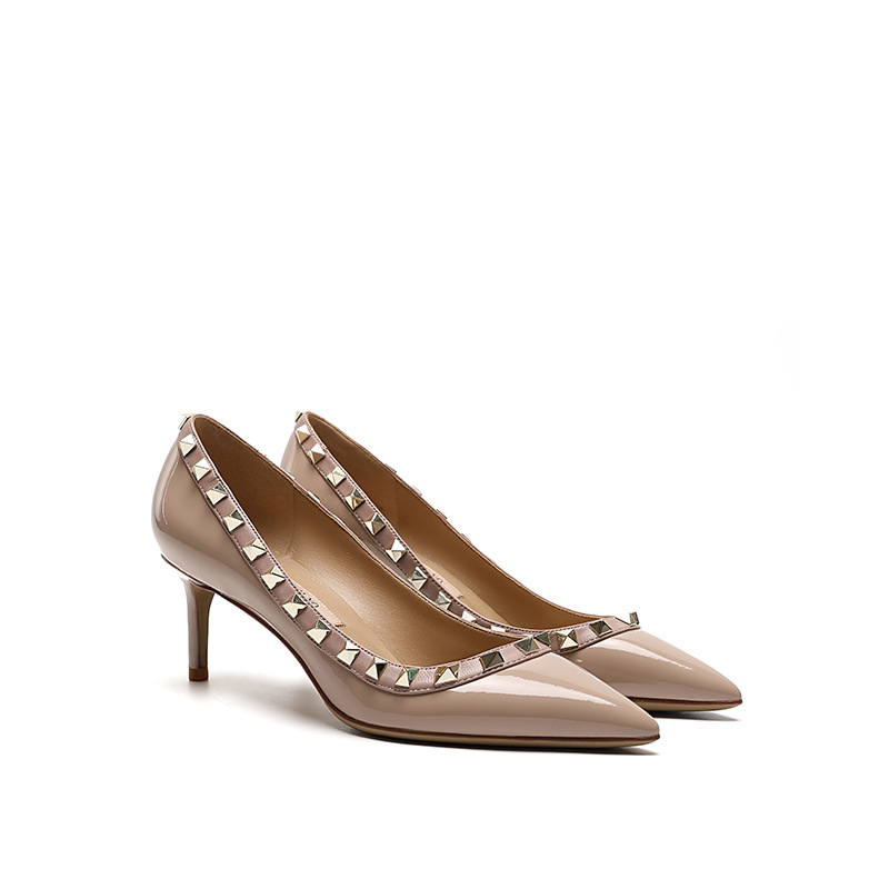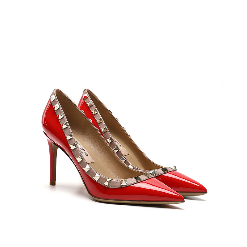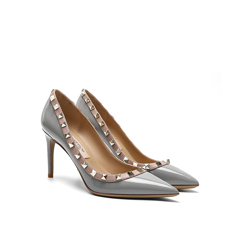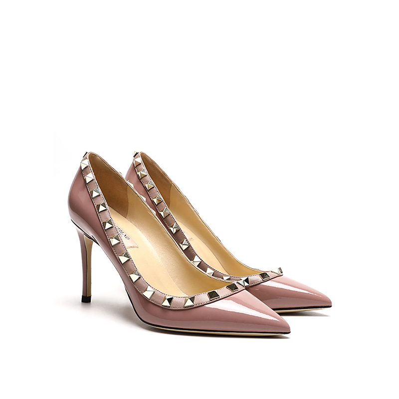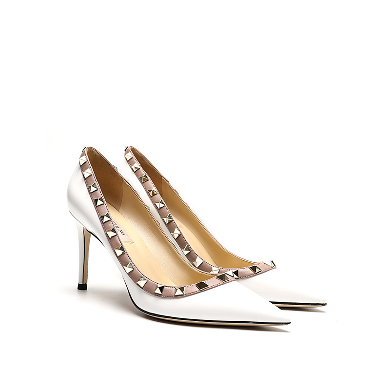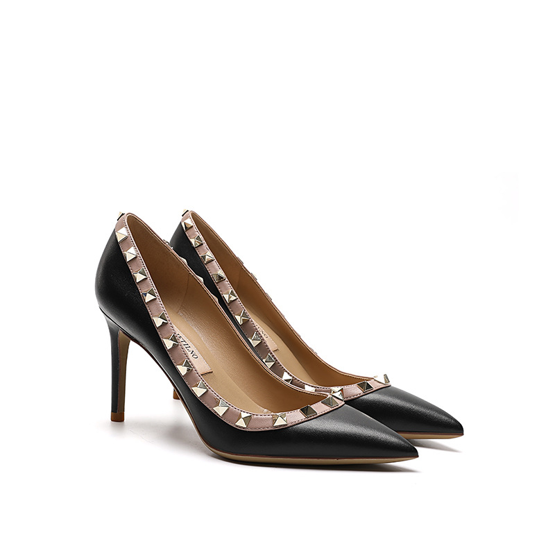리벳 하이힐 여성용 스틸레토 힐 2026 가을 겨울 신상 섹시하고 우아한 뾰족코 V자형 리벳 슈즈 블랙스토어 가기