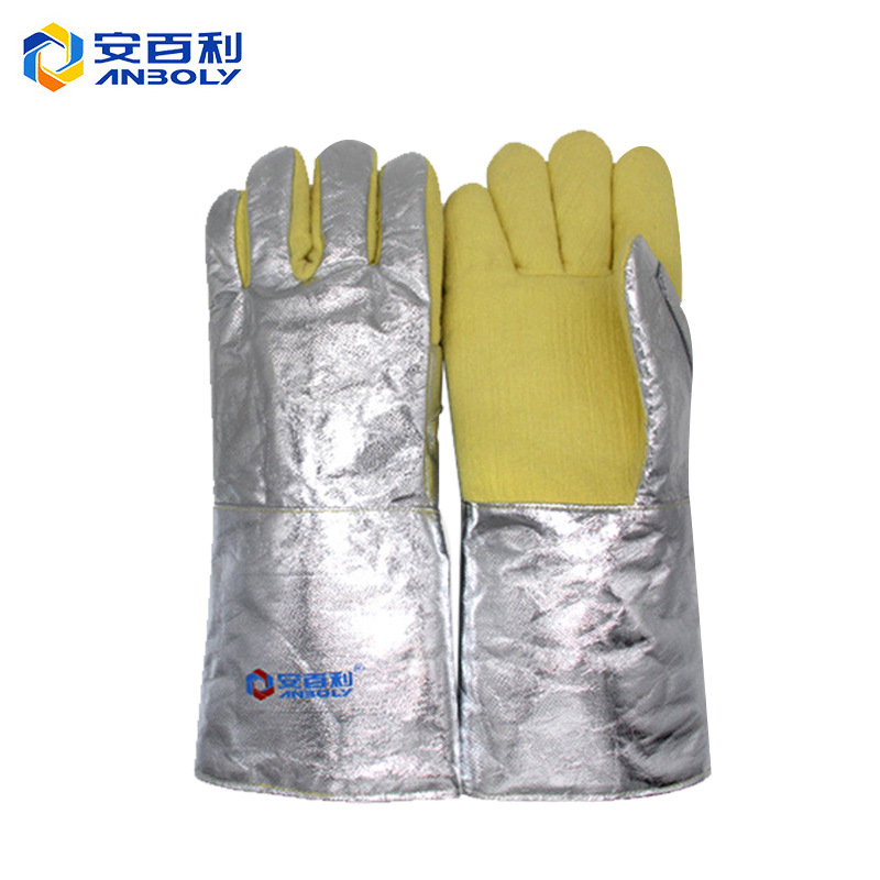 Ambaili ABL-S521 고온 저항 500 도 알루미늄 호일 백 단열 장갑 강철 야금 아라미드 조밀 직물