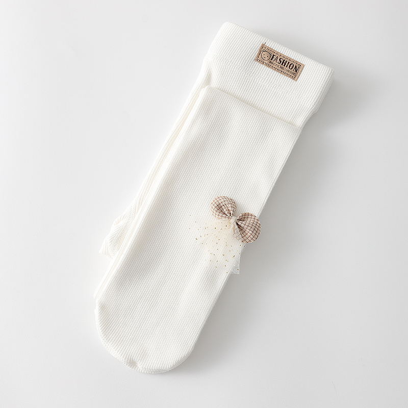 2021 가을 새로운 여자 한국 스타일 세로 Houndstooth 팬티 스타킹 어린이 빗질 코튼 보우 댄스 양말