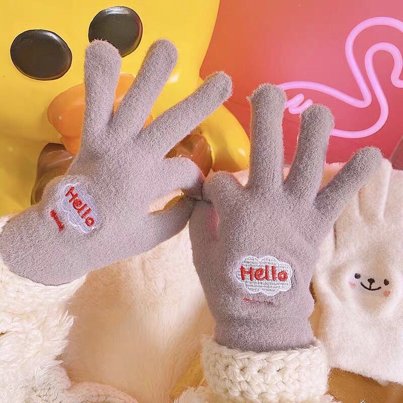 만화 스마일 얼굴 모조 밍크 벨벳 니트 장갑 겨울 야외 따뜻한 귀여운 학생 터치 스크린 손가락 성인 장갑