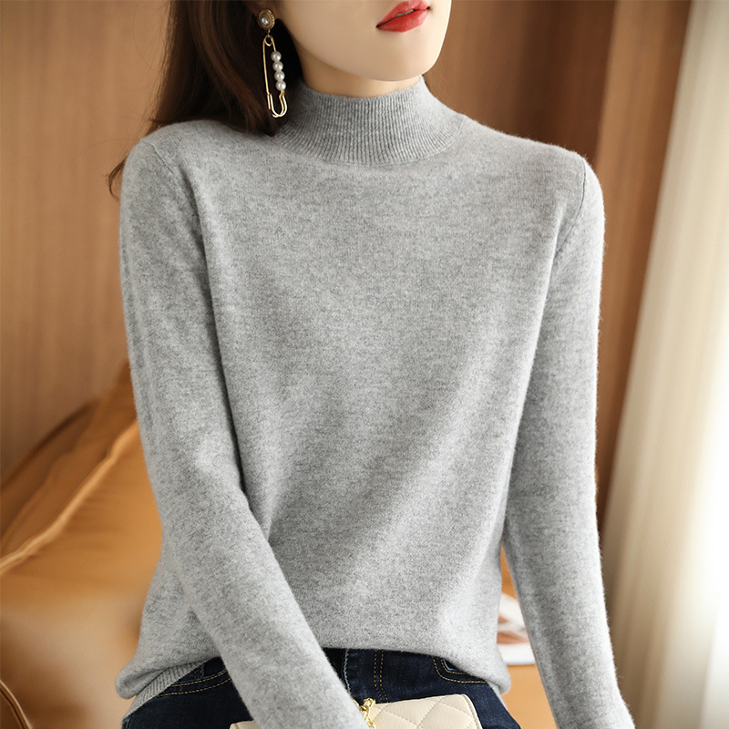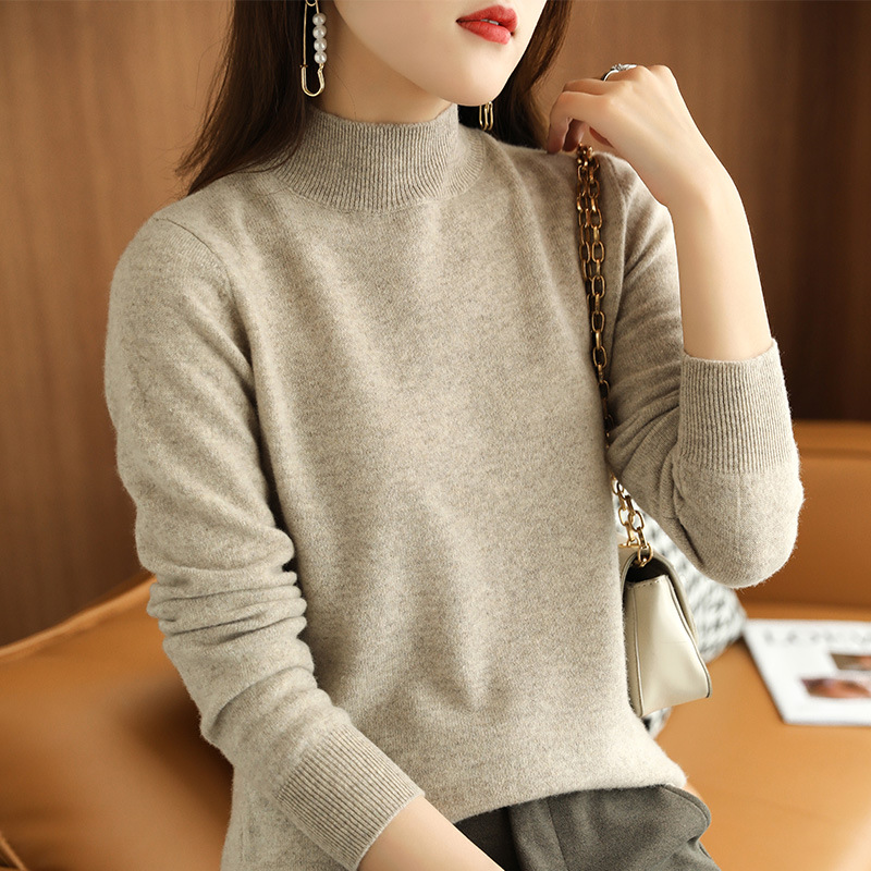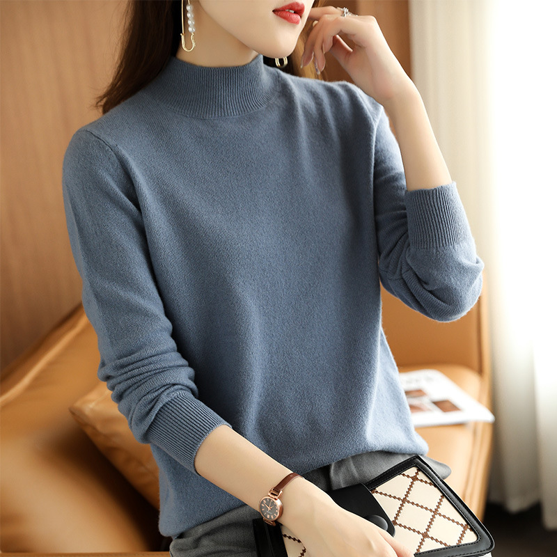 2021 가을 신상품 스웨터 여성용 루즈한 하프 터틀넥 스웨터 미드넥 탑 퓨어 화이트 이너베이스 셔츠스토어 가기